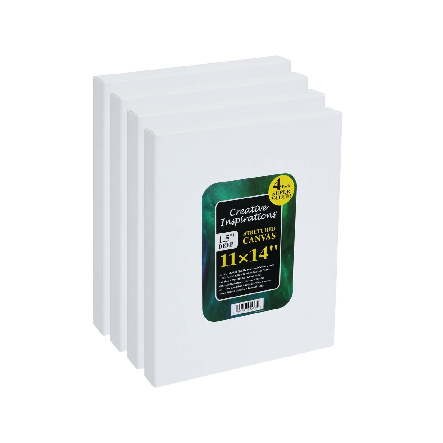 Creative Inspirations Stretched Canvas for Painting- 1-1/2" Deep, 4-Pack, 11oz Sealed & Double-Primed Cotton Canvases, Pine Stretcher Frame, Archival All-Media Primer - Alkyd, Acrylic & Oil Painting