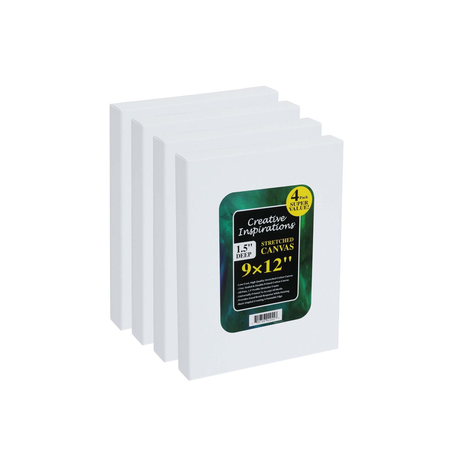 Creative Inspirations Stretched Canvas for Painting- 1-1/2" Deep, 4-Pack, 11oz Sealed & Double-Primed Cotton Canvases, Pine Stretcher Frame, Archival All-Media Primer - Alkyd, Acrylic & Oil Painting