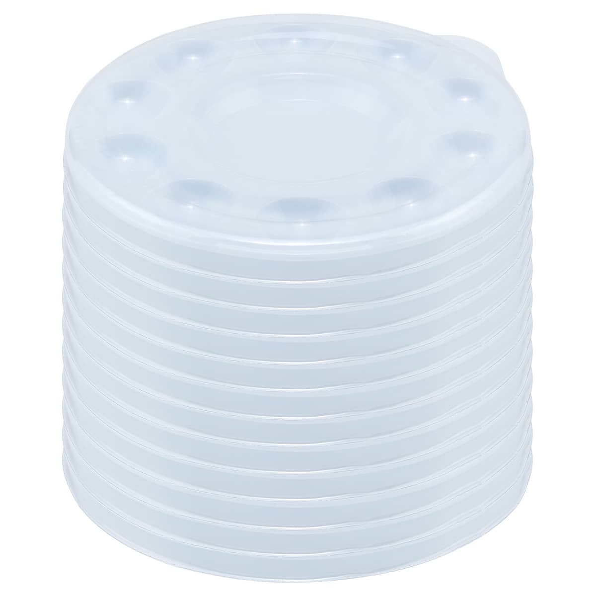 Creative Mark 10-Well Round Plastic Paint Palette - Packs of 12, Durable, Reusable, Solvent-Resistant, with Oversized Paint Wells For Students, Artists, Teachers - 7.4ml (0.25oz) per Well