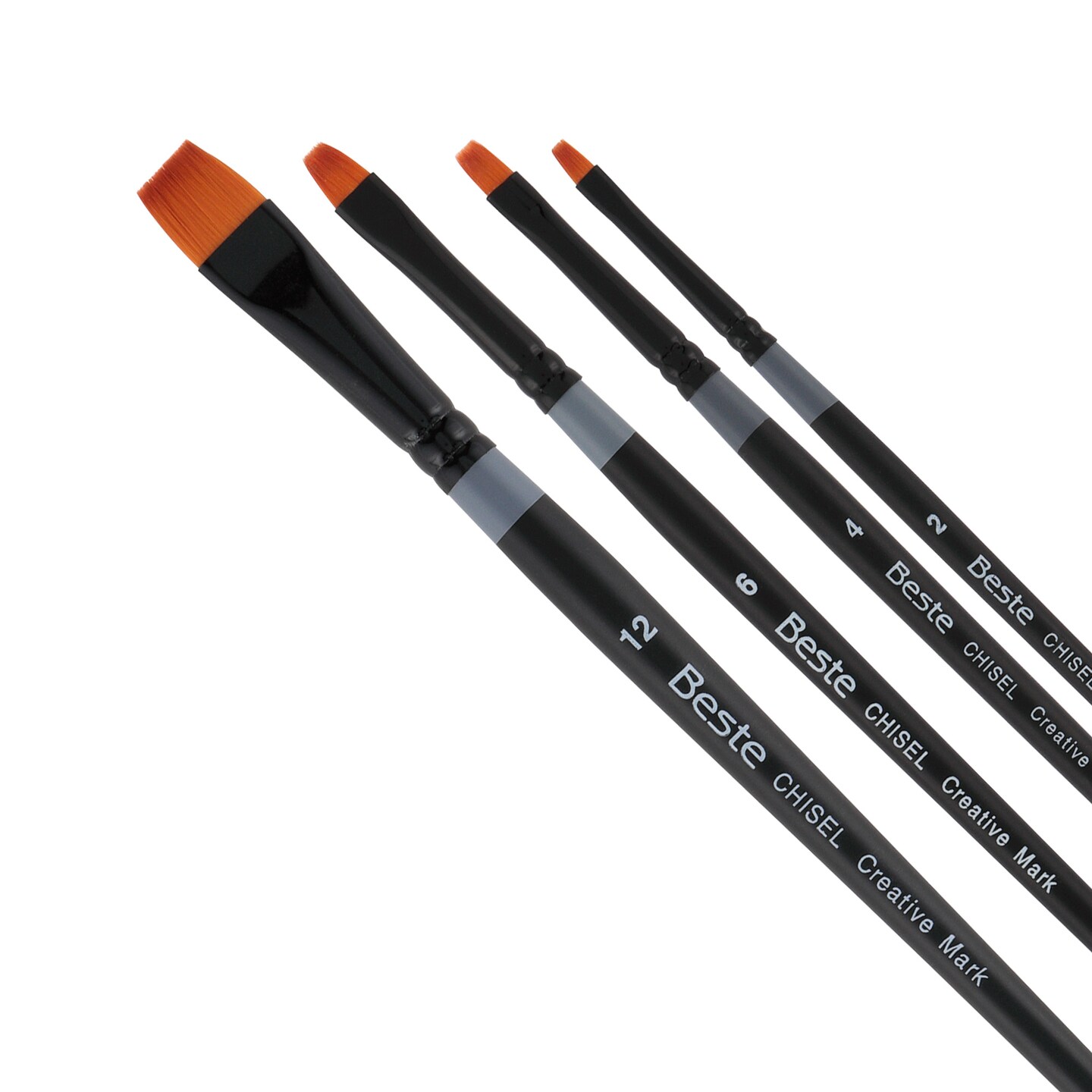 Creative Mark Beste Golden Taklon Chisel, Set of 4 Artist Paint Brush, Professional Watercolor Brushes, For Acrylic Painting, Short Handle, Sharp Edges, Hand-Tied & Shaped