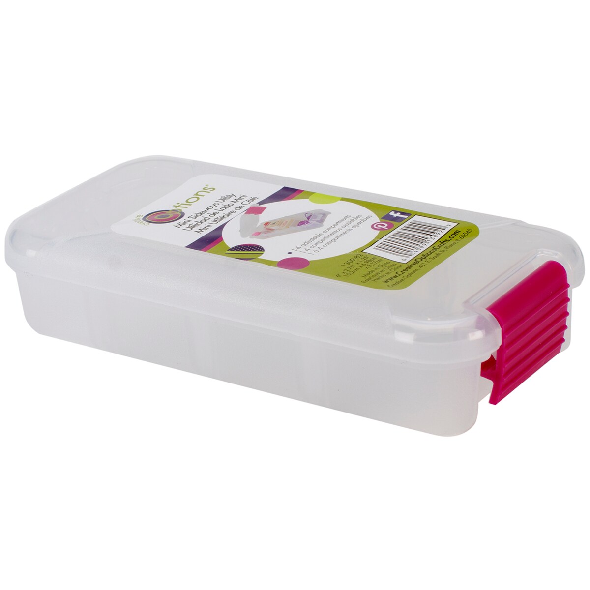 Creative Options Pro Latch Utility Box 1-4 Compartments-6"X2.75"X1.25" Clear W/Magenta
