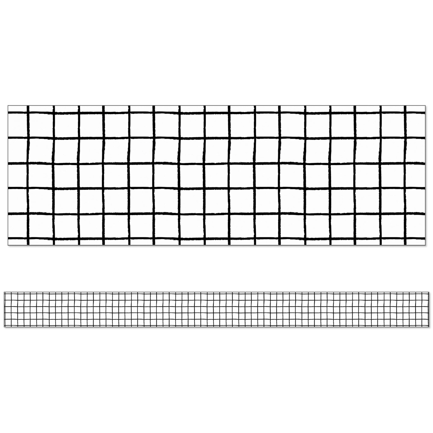 Creatively Inspired Black & White Grid Straight Borders, 36 Feet