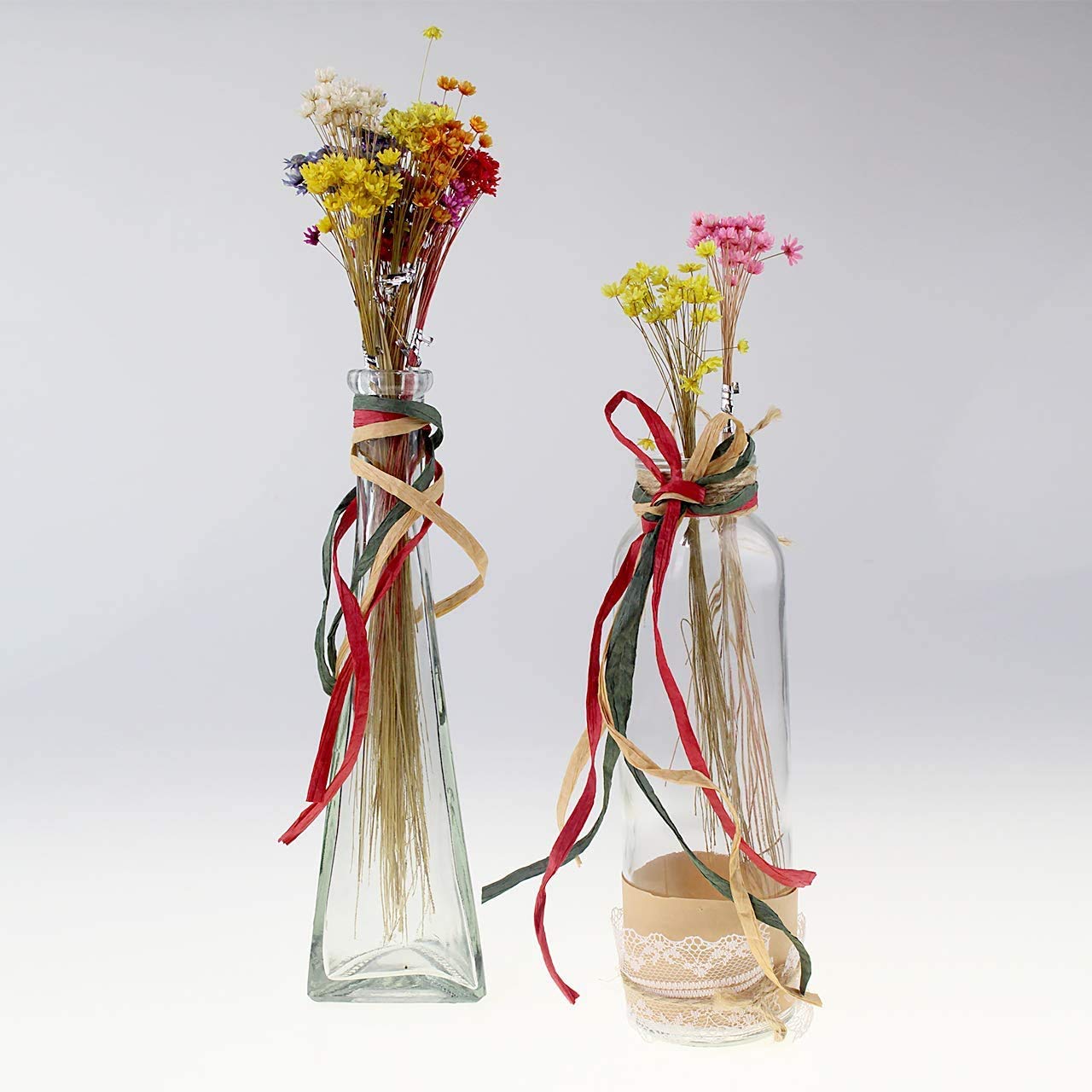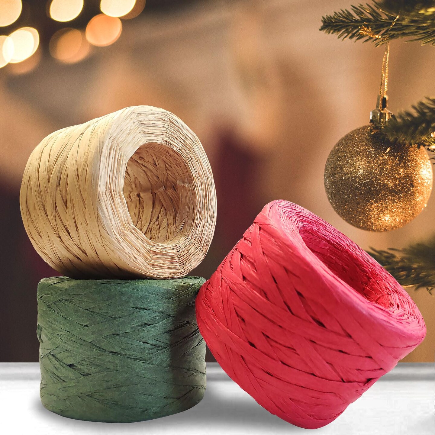 CREATRILL 3 Rolls Red Green Kraft 1/4" by 492 Feet Raffia Ribbon/String, 164 Feet Each Roll, Packing Paper Twine for Christmas