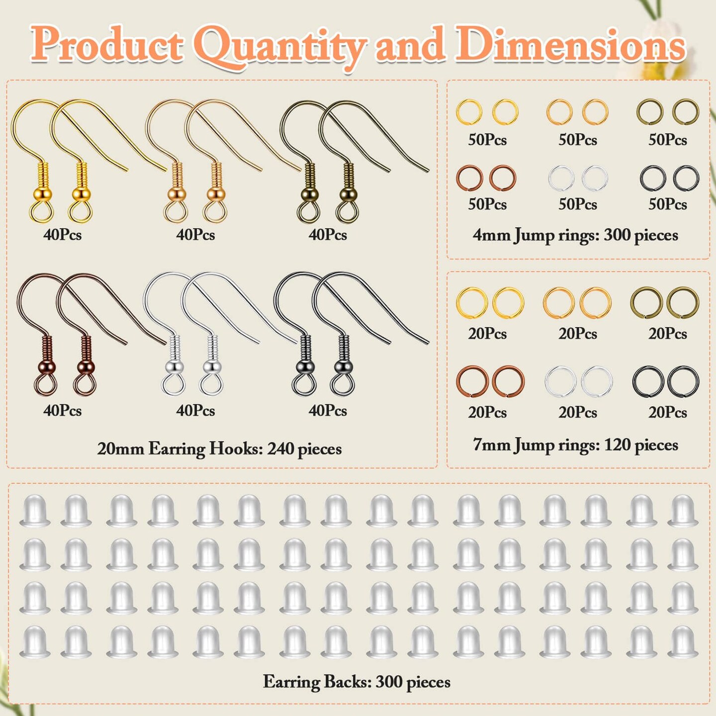 Cridoz 960PCS Earrings Making Supplies Kit with 240PCS Earring Hooks, 420PCS Jump Rings and 300PCS Earring Backs for Earring Making and Repair (Multicolors)