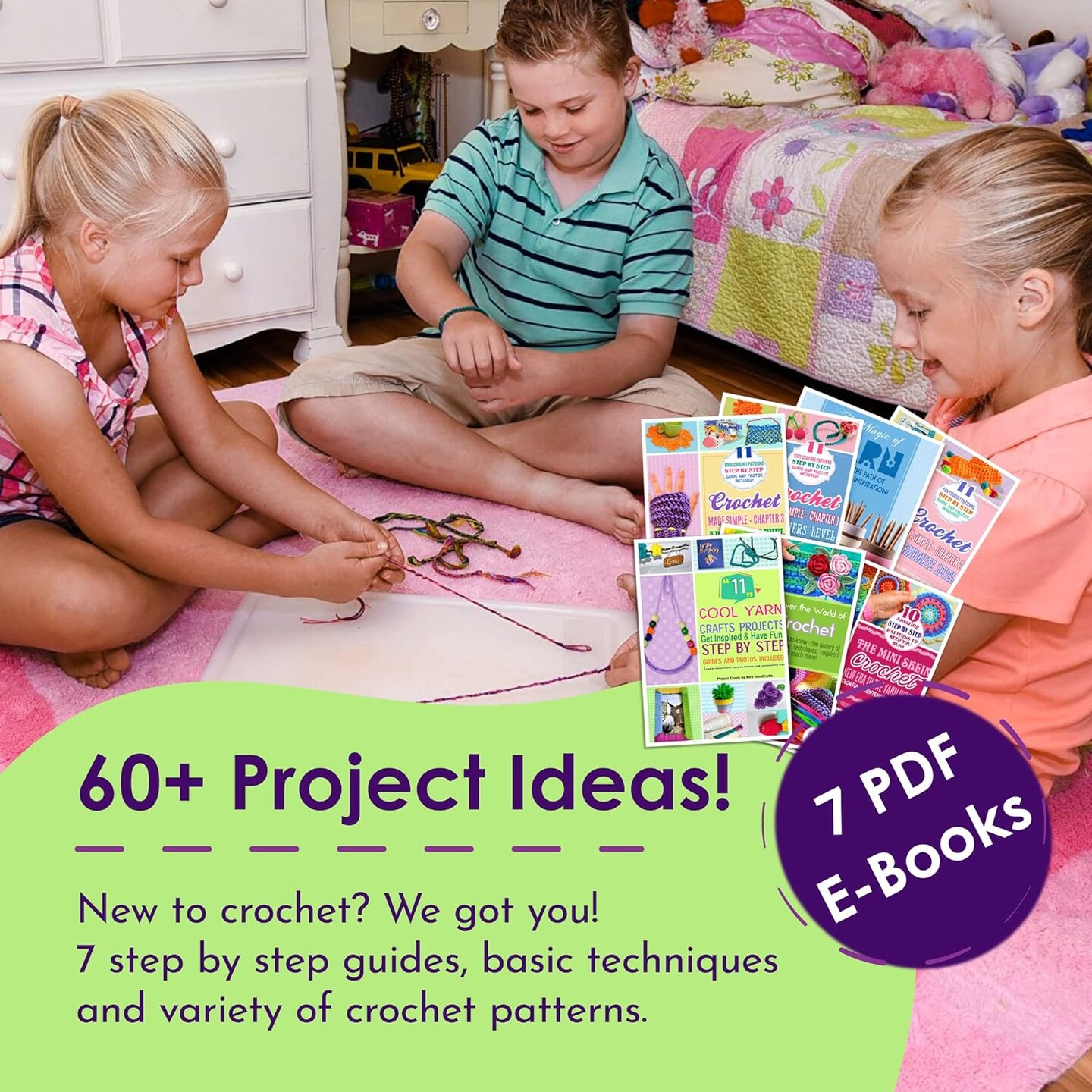 Crochet and Knitting Starter Kit for Colorful Arts and Crafts - 24 Yarn Skeins with 525 Yards of Multicolored Thread, 2 Hooks, 2 Weaving Needles
