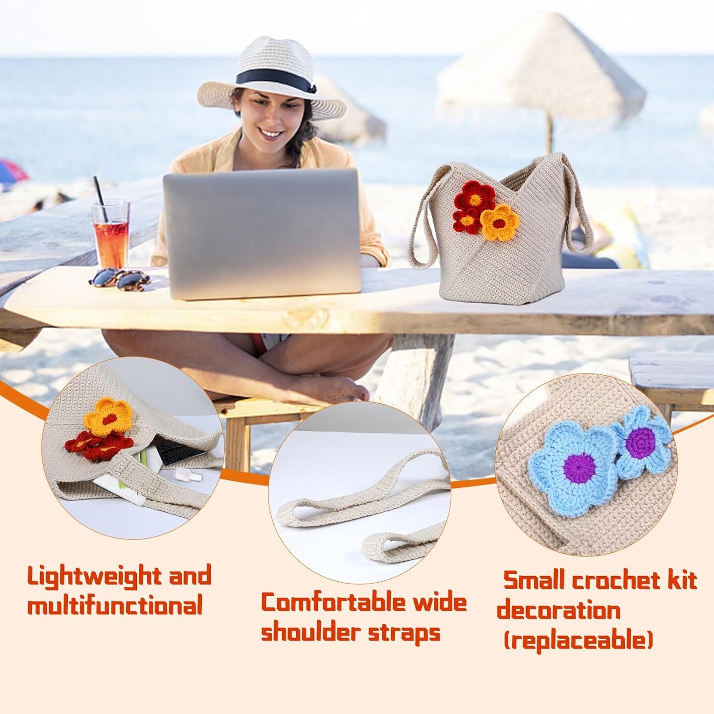 Crochet Bag Kit for Beginners – Complete DIY Shoulder Bag Starter Set with Yarn, Hook, and Step-by-Step Video Tutorials, Perfect Craft Gift for Adults (Beige)