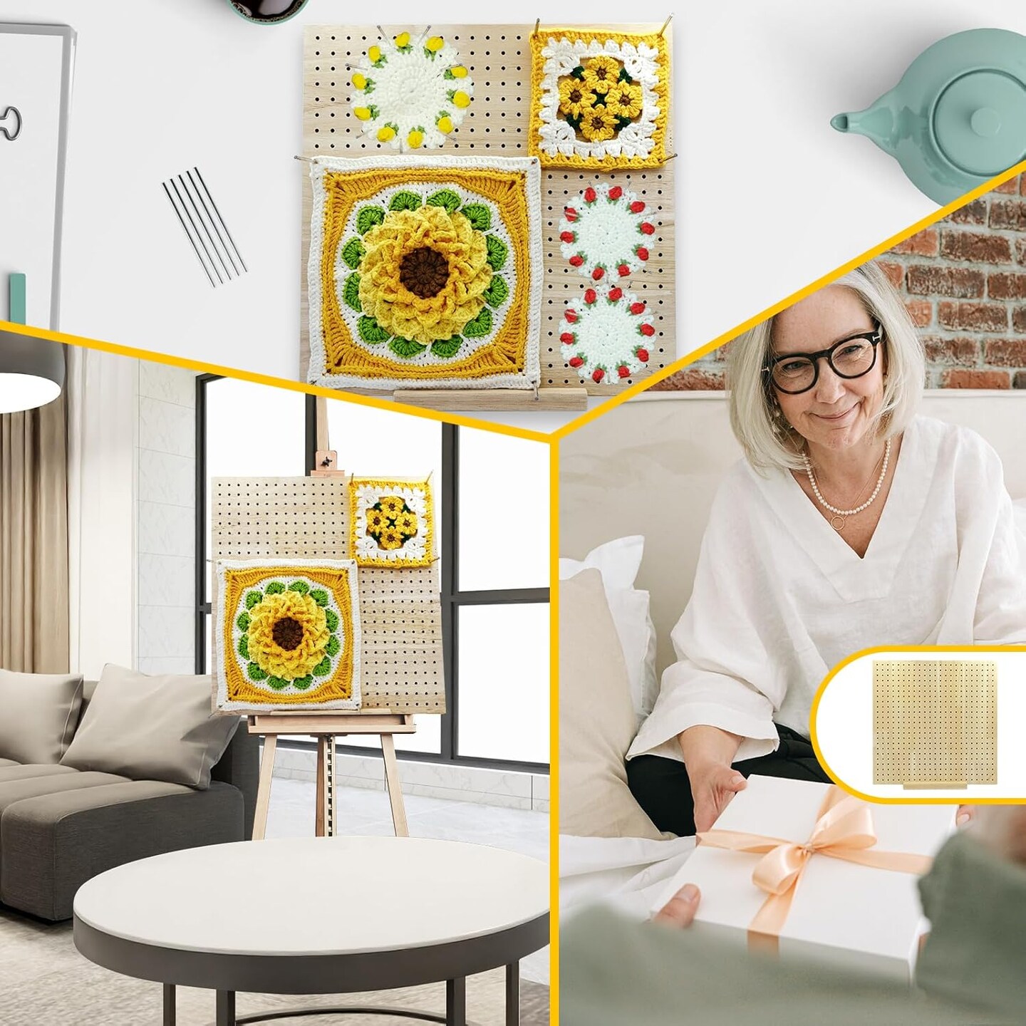 Crochet Blocking Board with 40 Pins (wood) 12.4 x 12.4 x 0.6 inches
