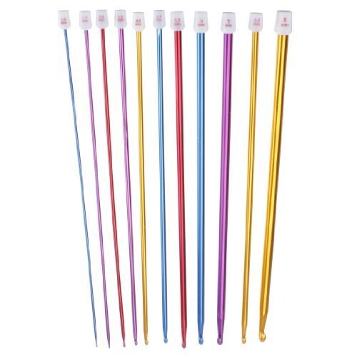 Crochet Hooks 11 Pack Diverse Size Assorted Color Tunisian Afghan Aluminum Knitting Needles Set (2mm to 8mm)