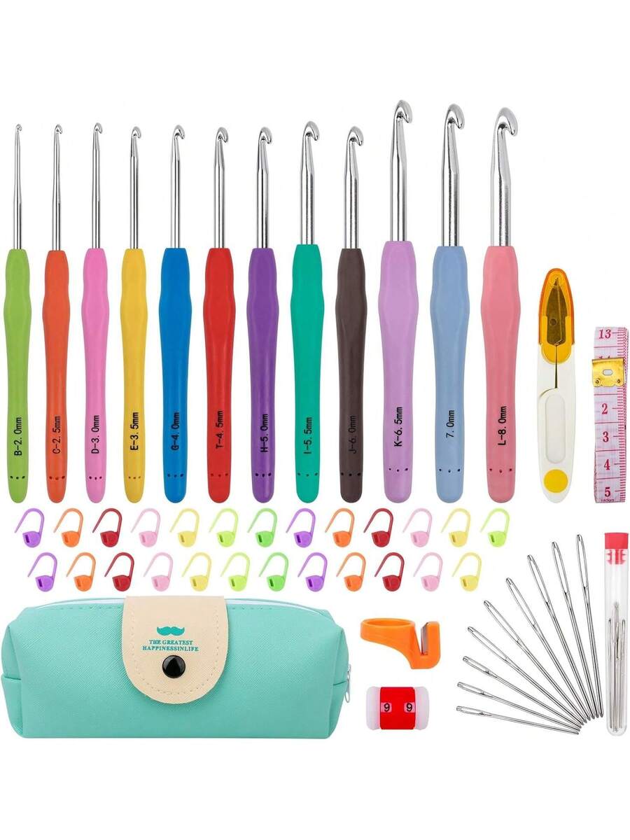 Crochet Hooks 12 Sizes, 51-Pack Yarn Crochet Kit with Ergonomic Handles