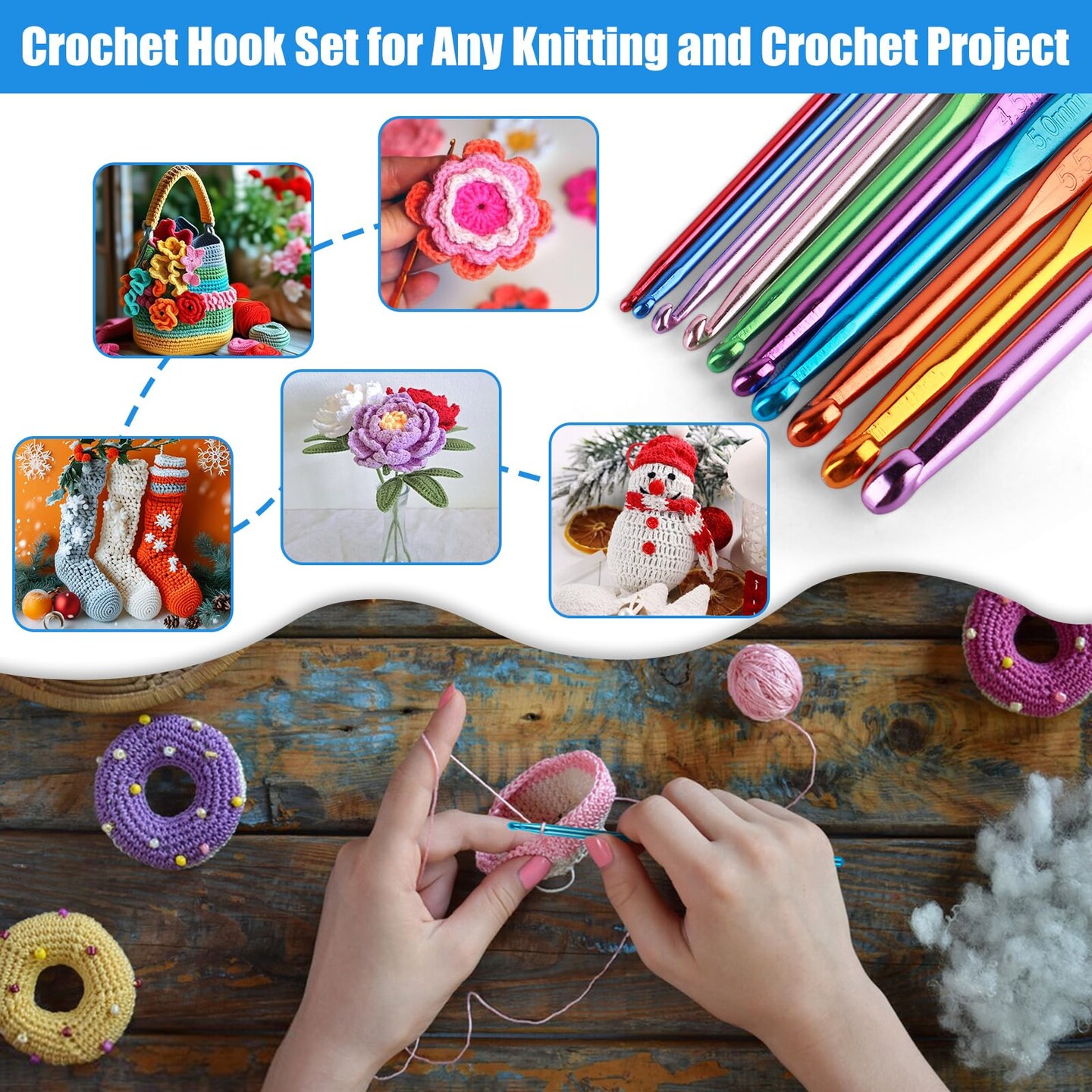 Crochet Hooks Set, 54 Pack Crochet Needles Set Crochet Kits for Beginners, Ergonomic Crochet Hooks Kit with Storage Case, Knitting Needles, Hand Craft Knitting Accessories for Crocheters