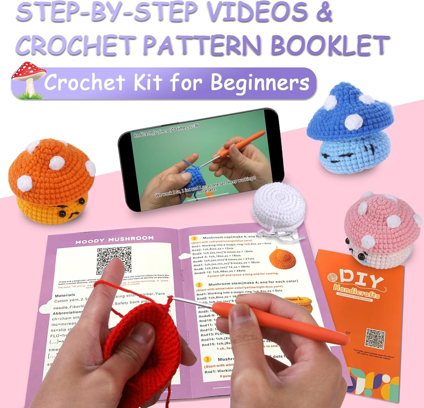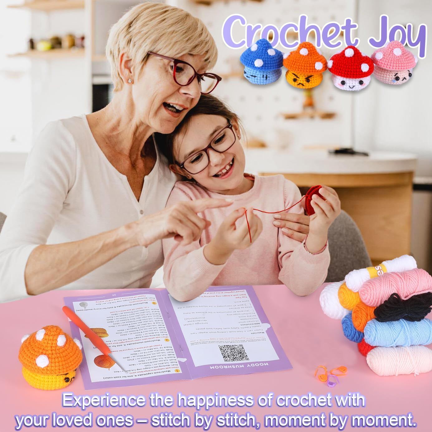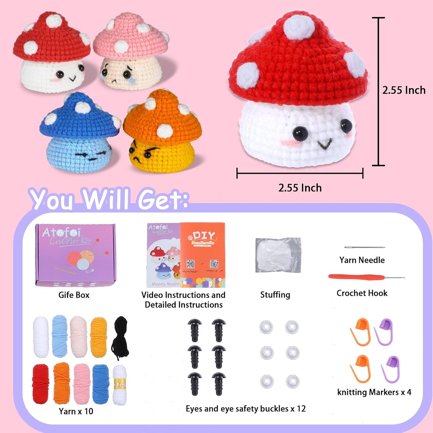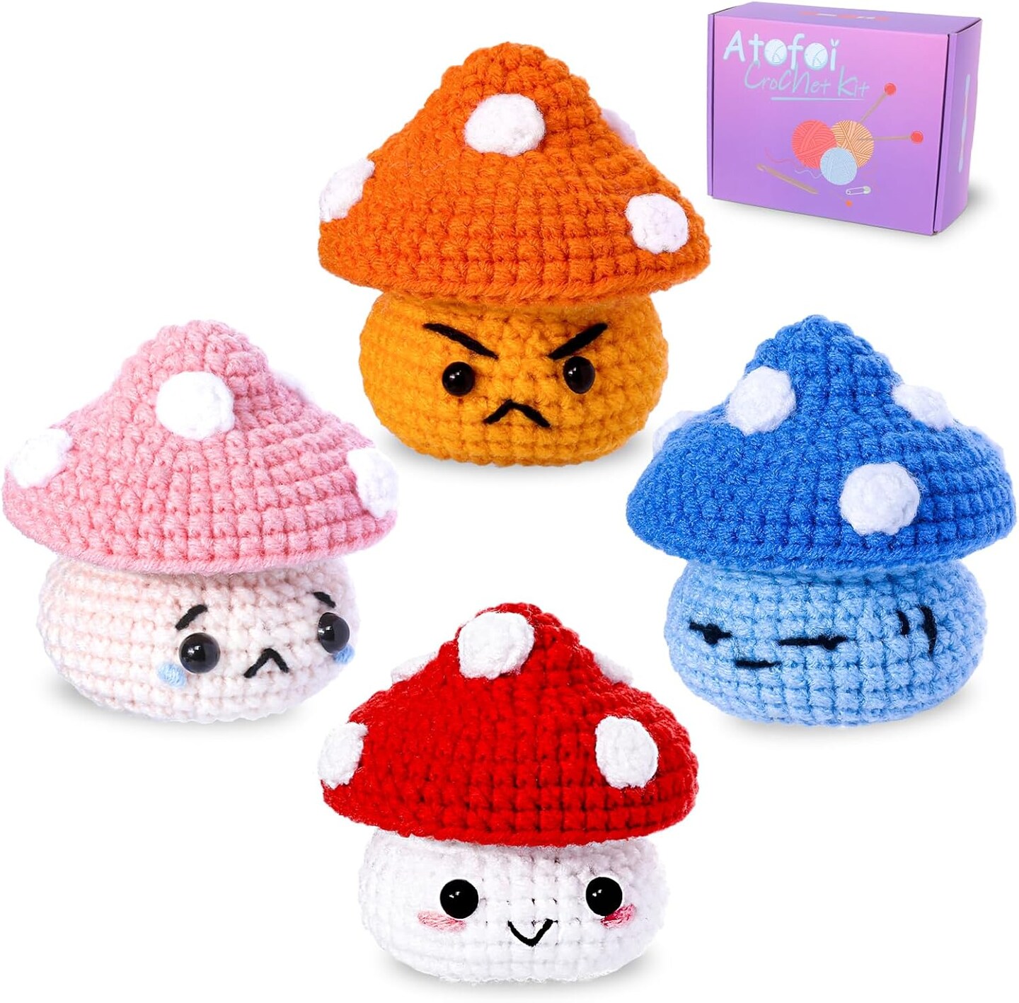 Crochet Kit - 4 Pack Mushroom 0.22 x 7.2 x 2 inches