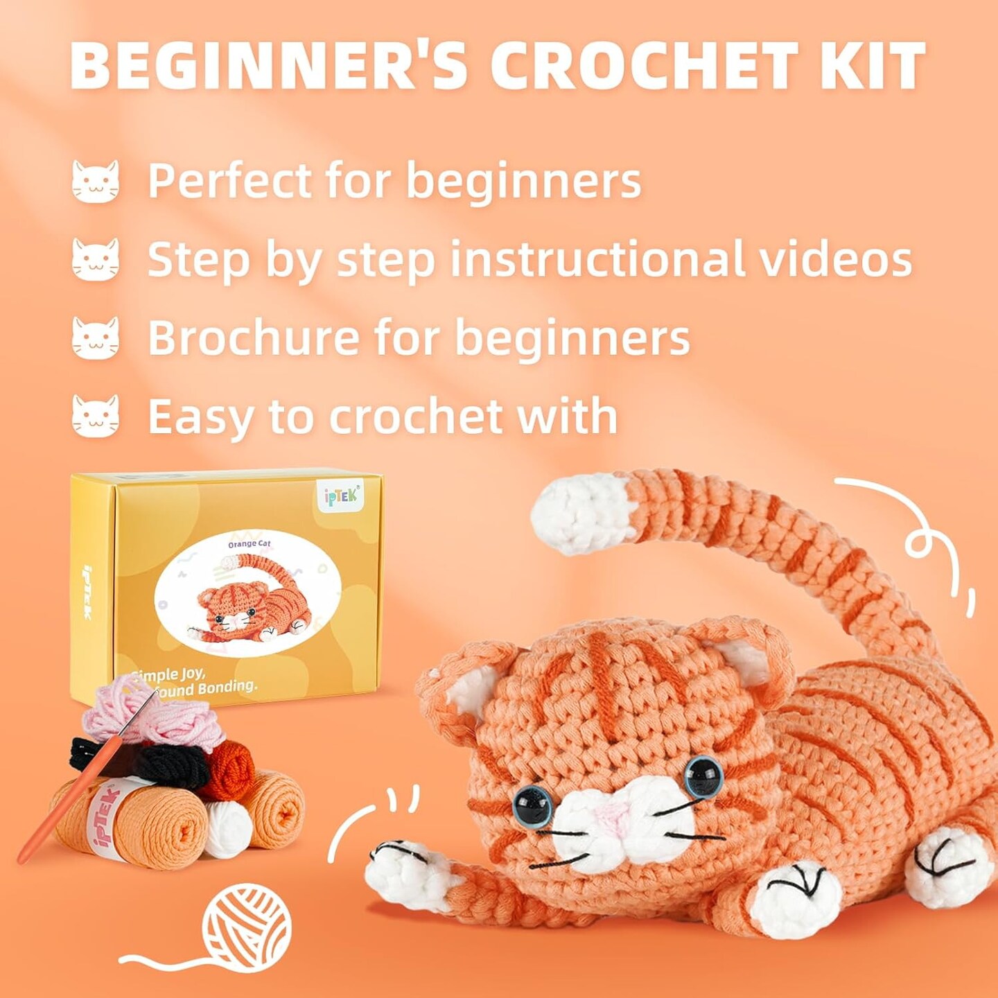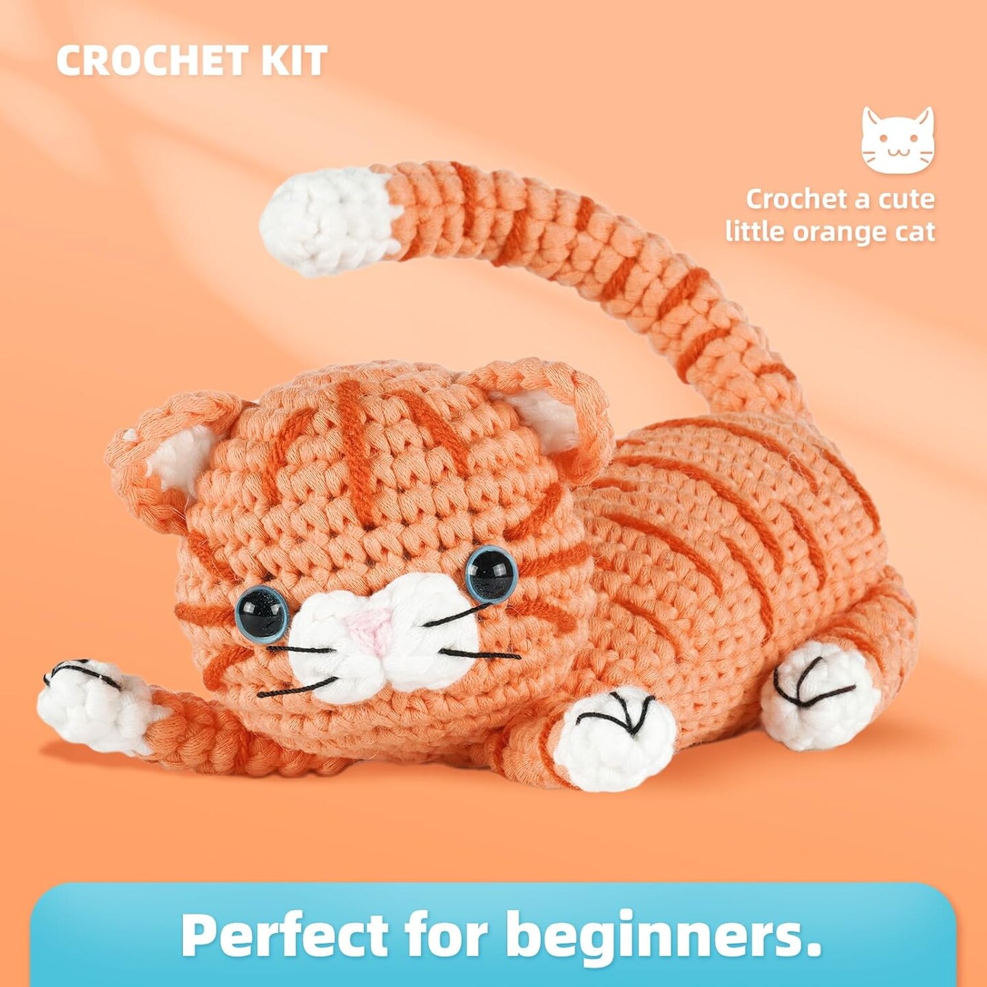 Crochet Kit for Beginners (1 Pack Orange cat)