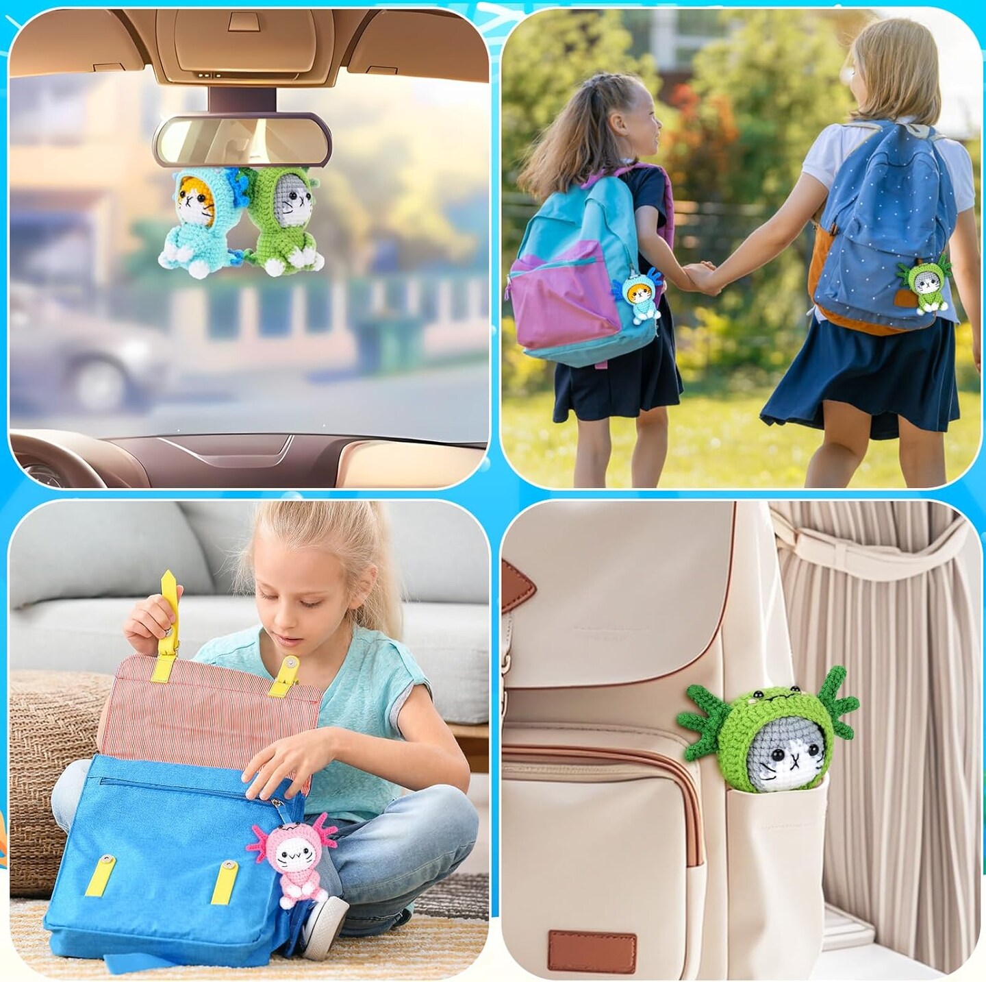 Crochet Kit for Beginners - 3 PCS Axolotl Cat Crochet Kits with Step-by-Step Video Tutorials, Beginner Crochet Kit for Adults