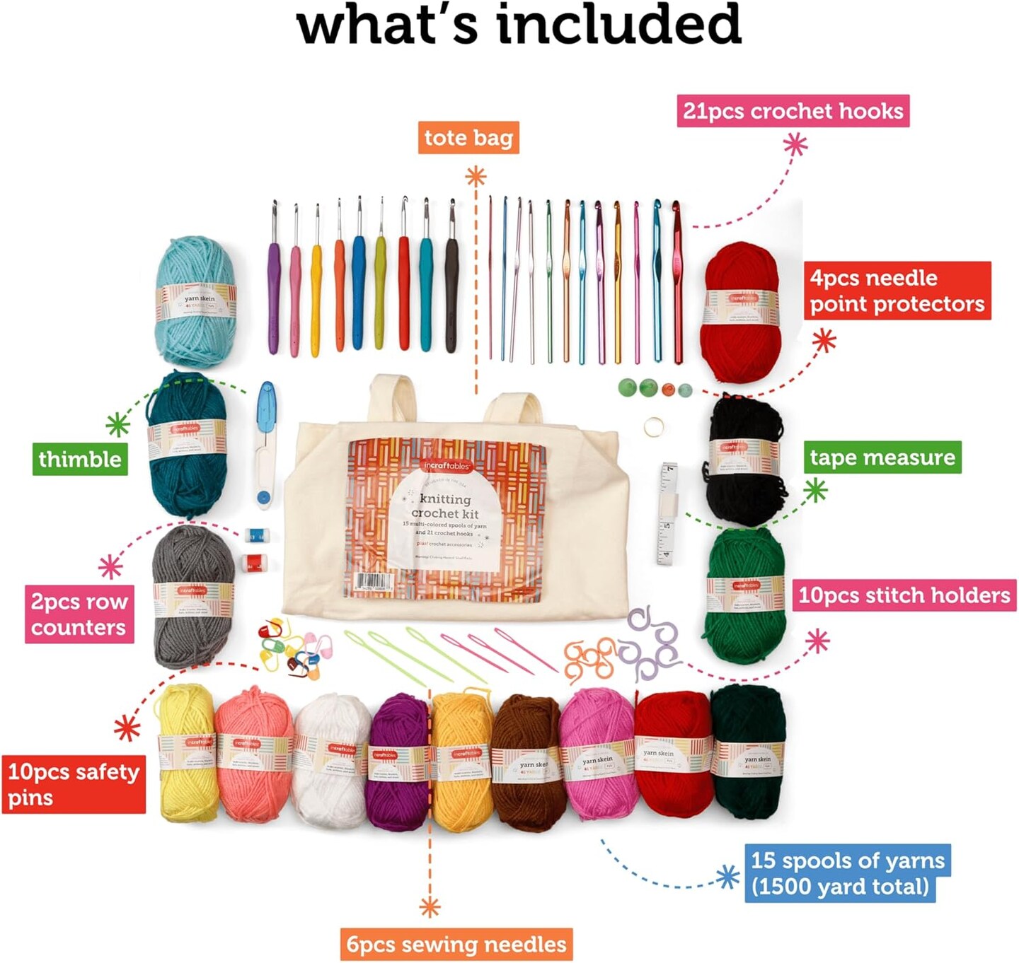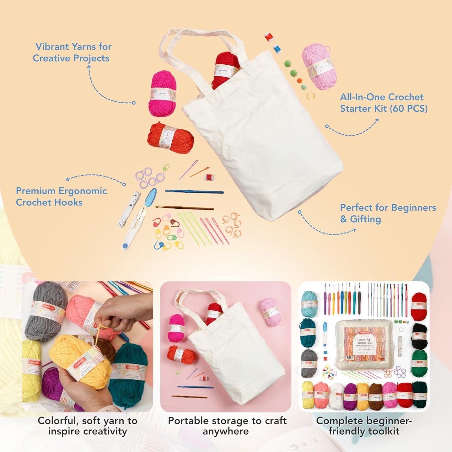 Crochet Kit for Beginners – 85 Piece Beginner Crochet Kit for Adults & Kids with Yarn, Hooks, Accessories & Bonus Tote Bag Organizer – Learn to Crochet with Complete Starter Set