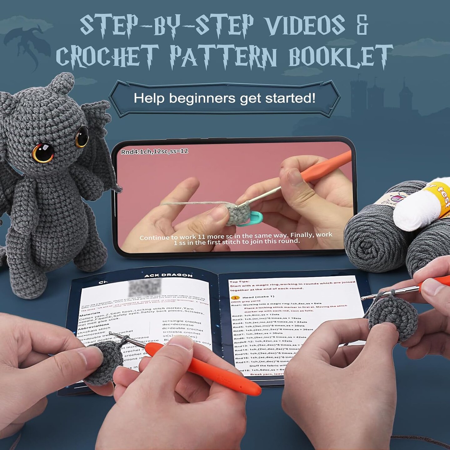 Crochet Kit for Beginners, Amigurumi Crocheting Animals Kits w Step-by-Step Video Tutorials, Knitting Starter Pack