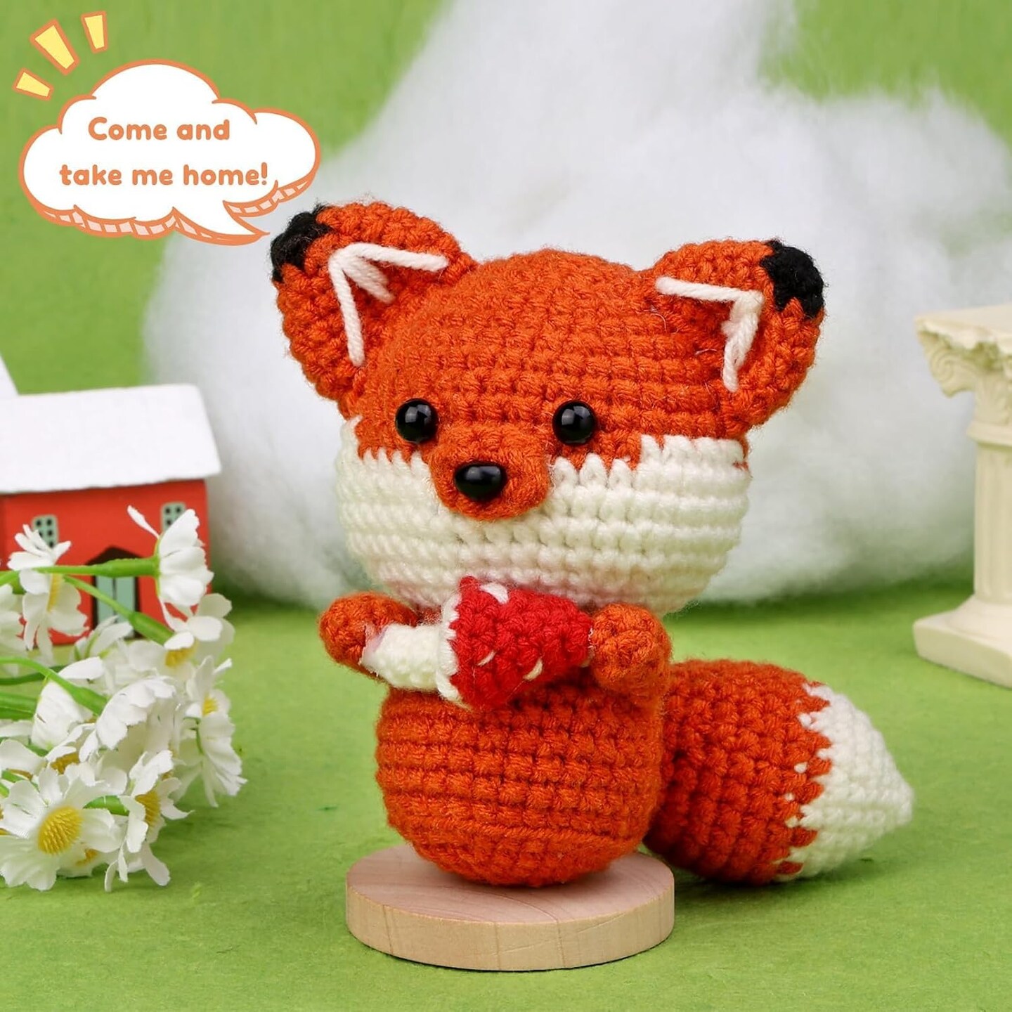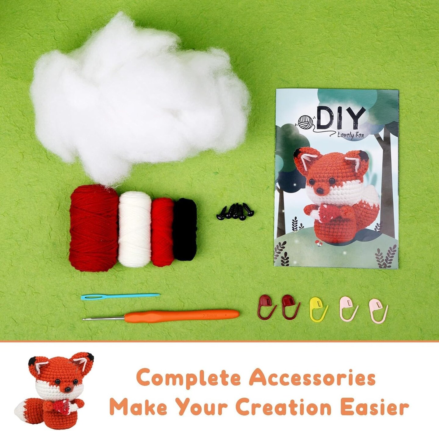 Crochet Kit for Beginners, Animal Crochet kit for Starters with Instructional and Step-by-Step Video Tutorials, Complete Crochet Accessories, Crochet Kit for Adults,Easy Starter Present(Fox)