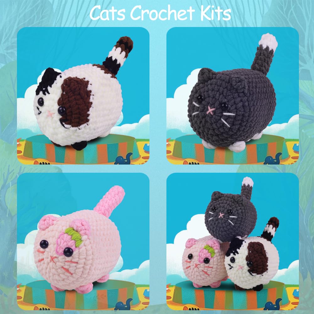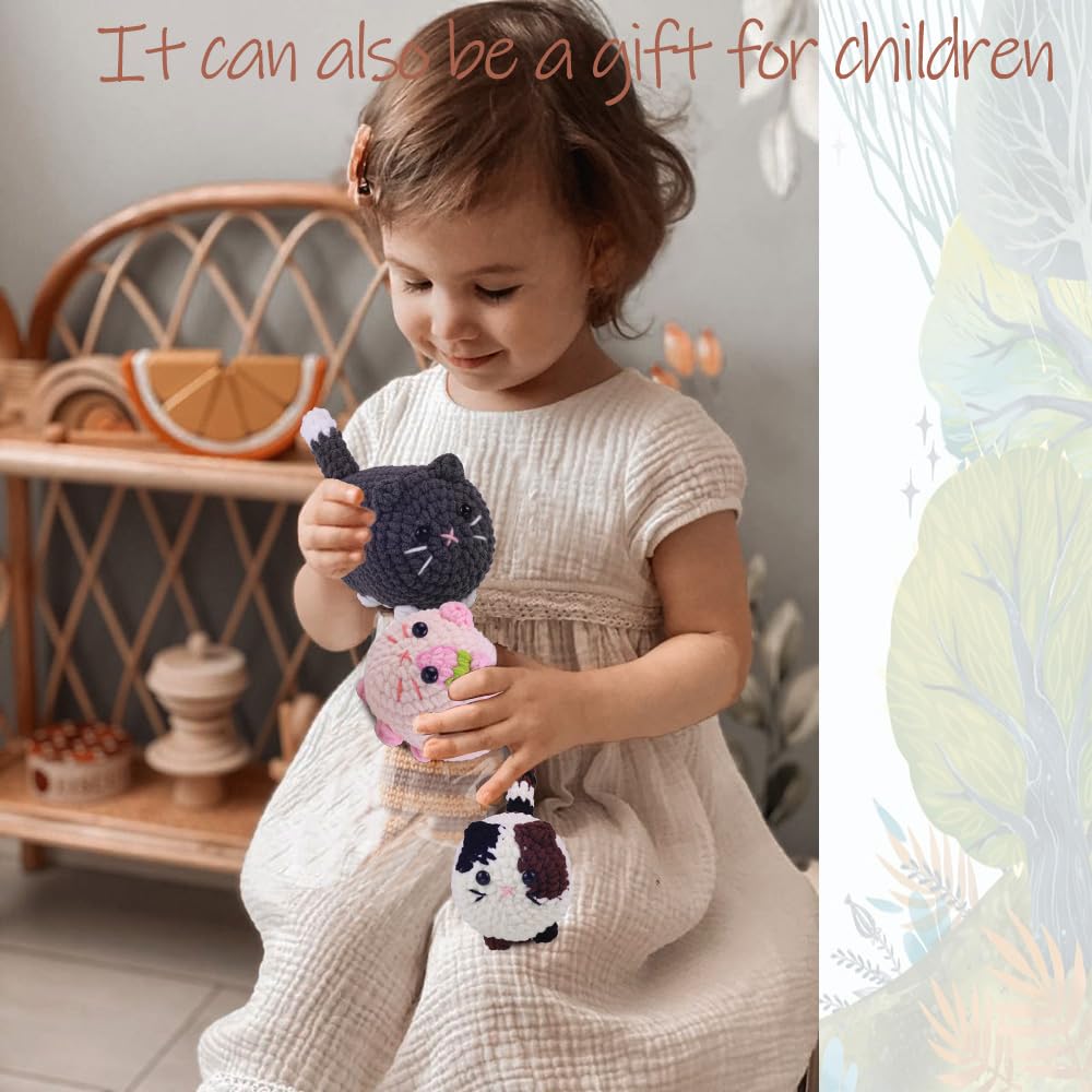Crochet Kit for Beginners, Crochet Kit with Step-by-Step Video Tutorials, Beginner Crochet Kit for Adults, Crochet Animal Kit for Kids(Pink cat)