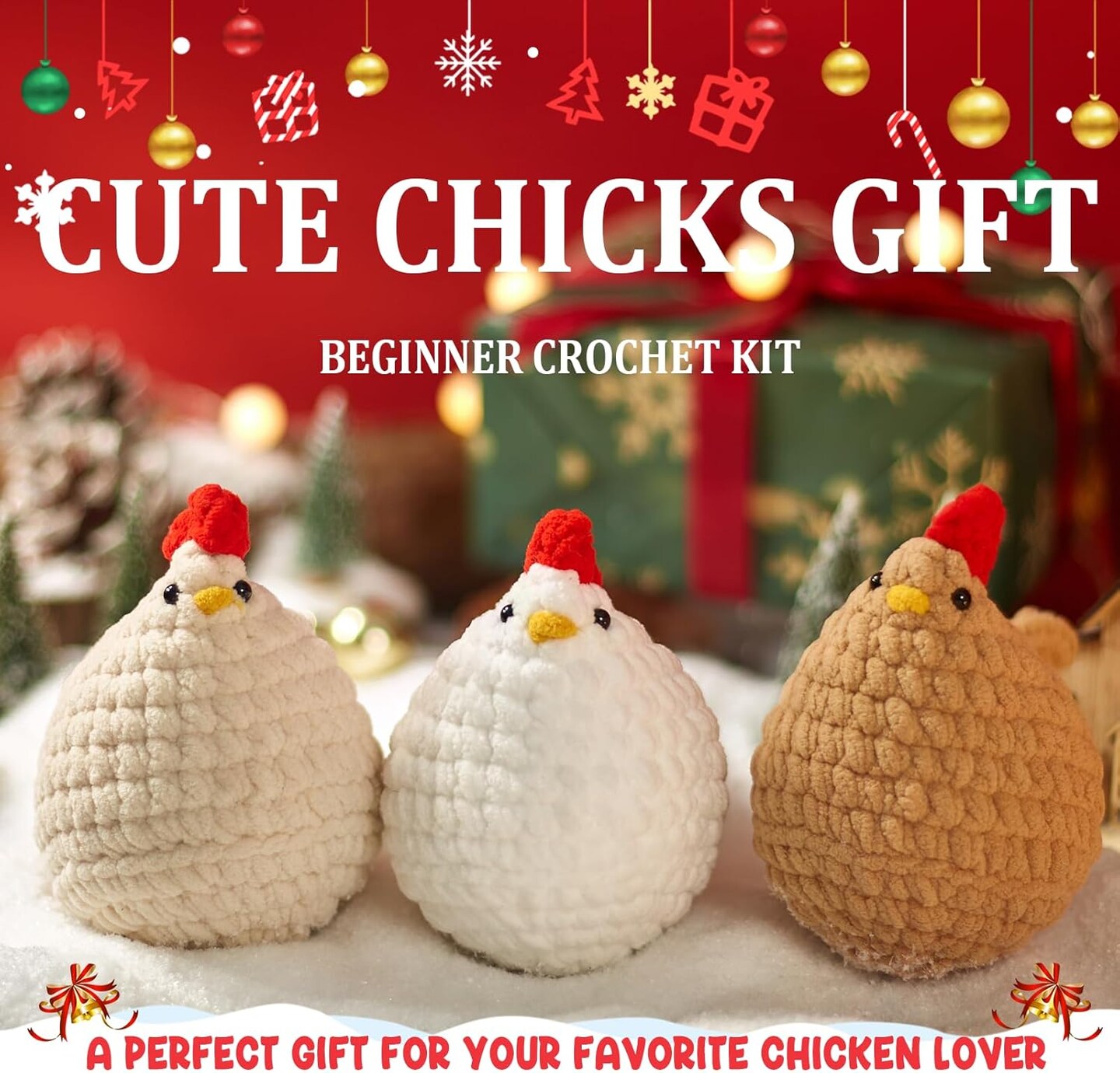 Crochet Kit for Beginners, Crochet Starter Kits for Adults Amigurumi Craft Knitting Crochet Animals Kits with Step-by-Step Video Tutorials, 3 Pcs Chicken (40%+ Yarn)