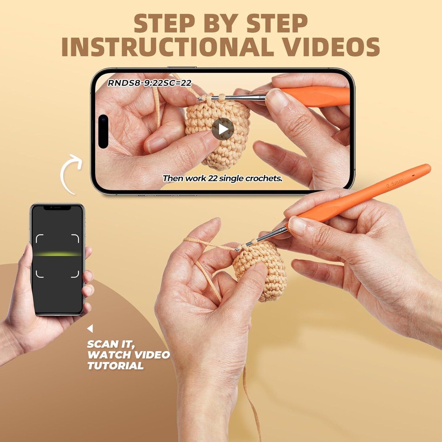 Crochet Kit for Beginners, Learn to Crochet, Include Easy Knitting Soft Yarn, Step-by-Step Video Tutorial, Hook, Holiday Birthday Gift