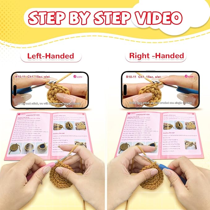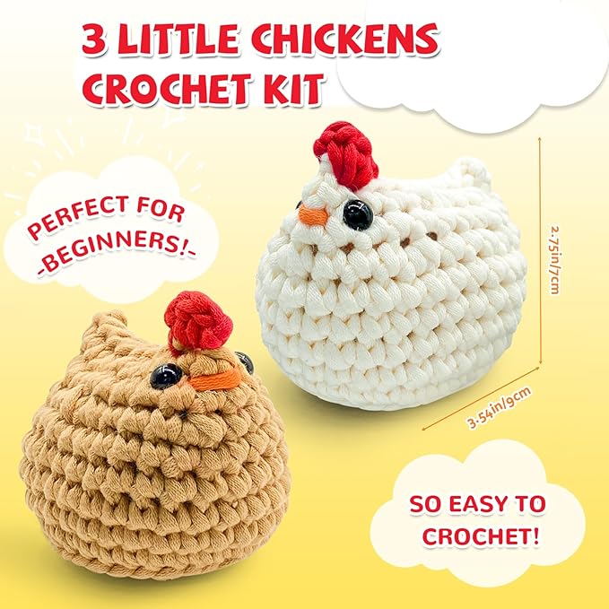 Crochet Kit for Beginners with Step-by-Step Video Tutorials, Starter Crochet Chickens Amigurumi Kit for Teens & Women - Easy DIY Handcraft Knitting Animal Kit - Learn to Crocheting (3 Chickens)