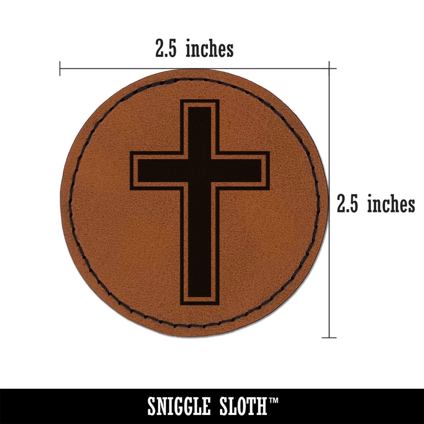 Cross with Outline Christian Round Iron-On Engraved Faux Leather Patch Applique - 2.5"