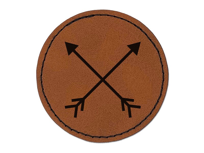 Crossed Arrows Round Iron-On Engraved Faux Leather Patch Applique - 2.5"
