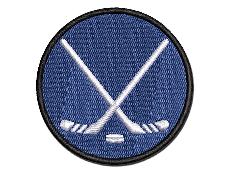 Crossed Hockey Sticks and Puck Multi-Color Embroidered Iron-On or Hook & Loop Patch Applique