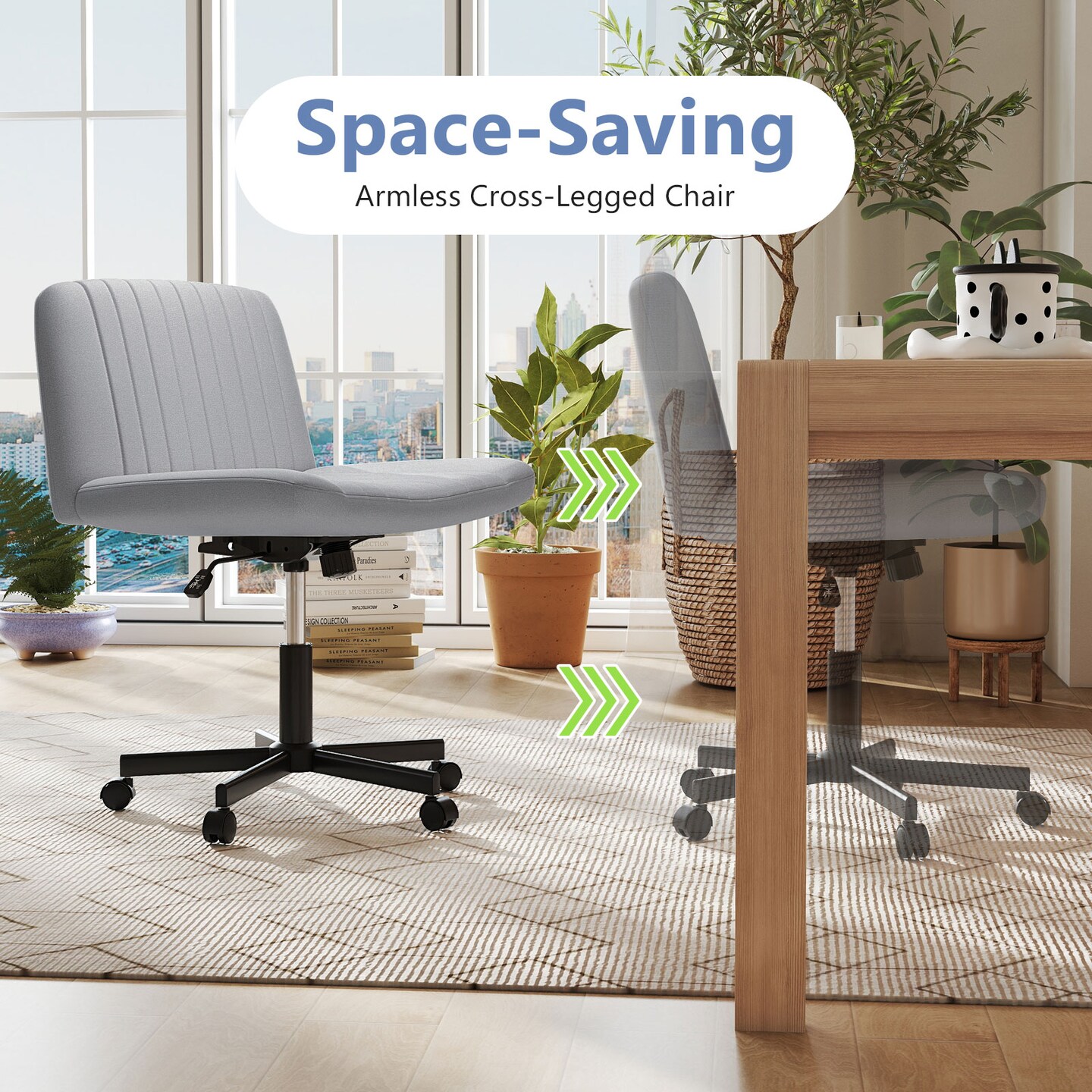 Cross-Legged Desk Chair with Wheels, Soft Padded Wide Seat for Home Office