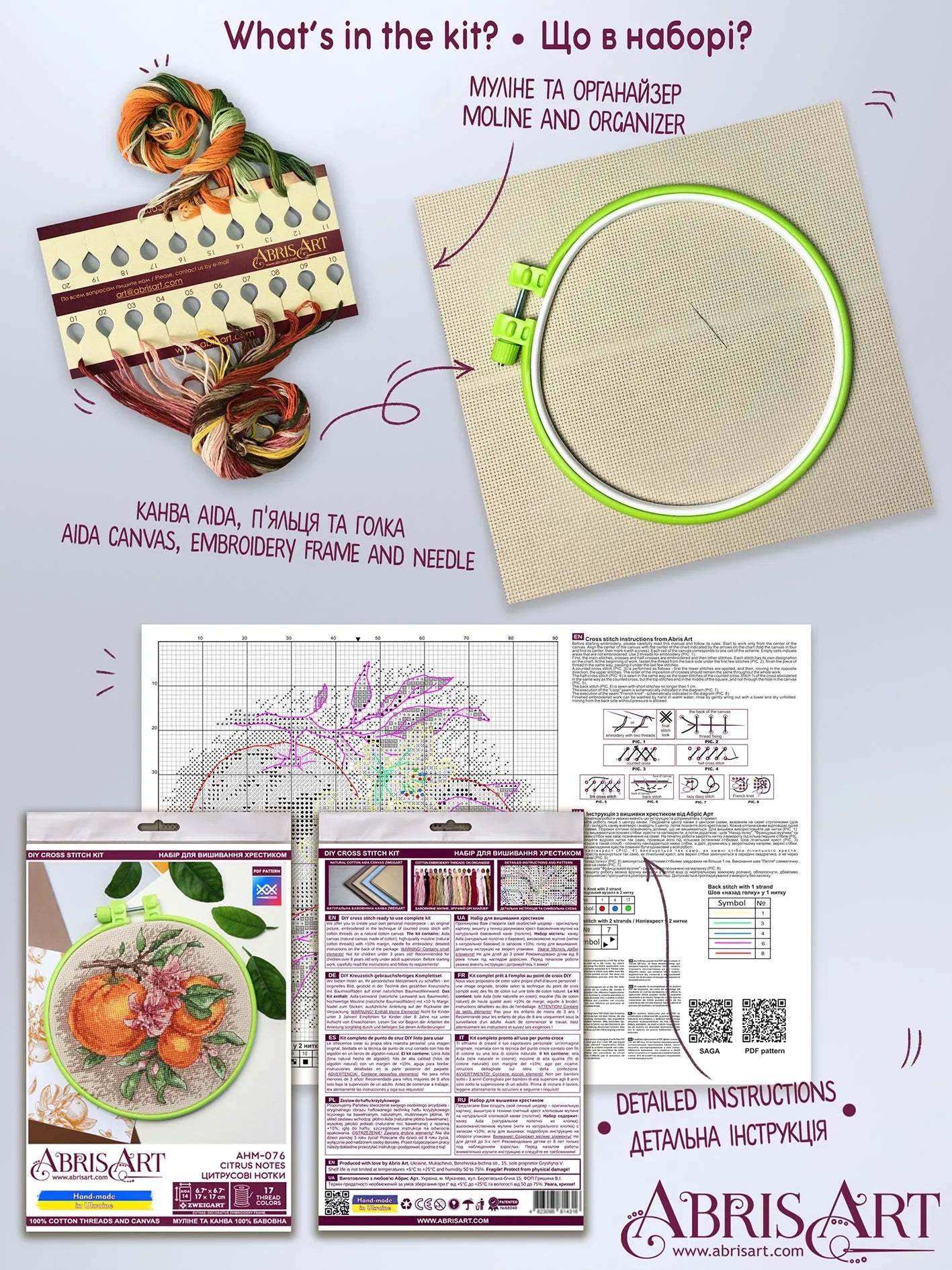 Cross-stitch kit Citrus notes