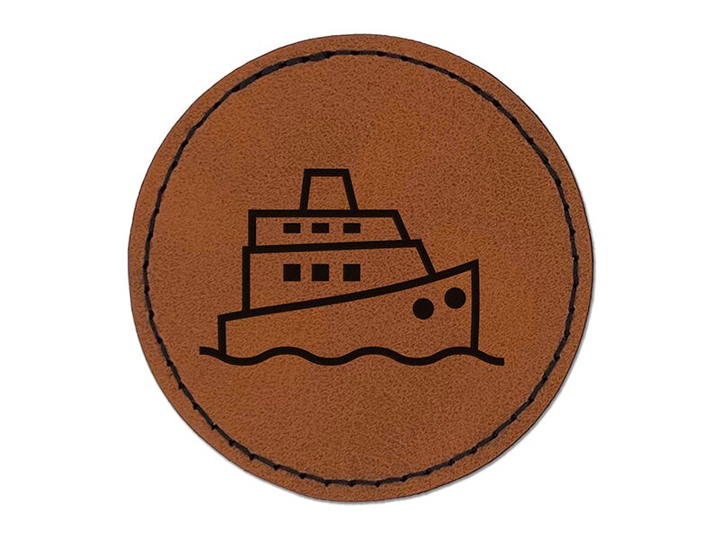Cruise Ship Yacht Travel Boat Round Iron-On Engraved Faux Leather Patch Applique - 2.5"