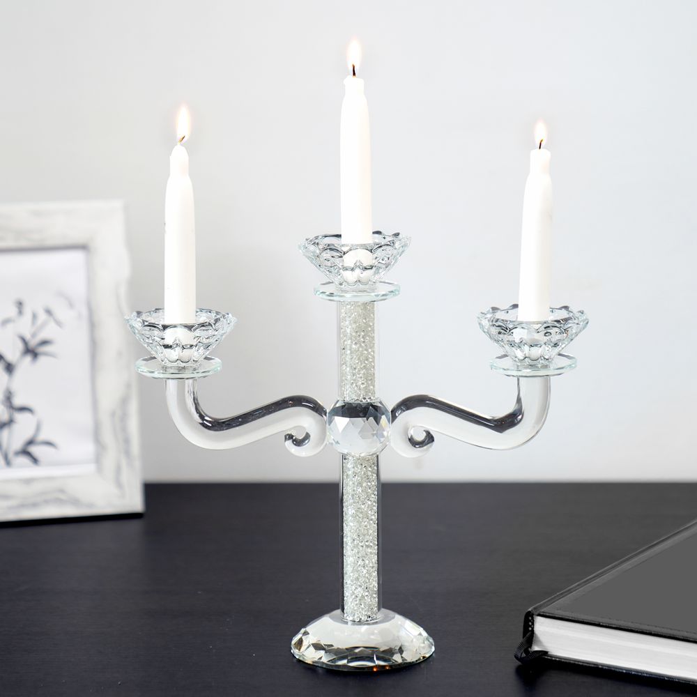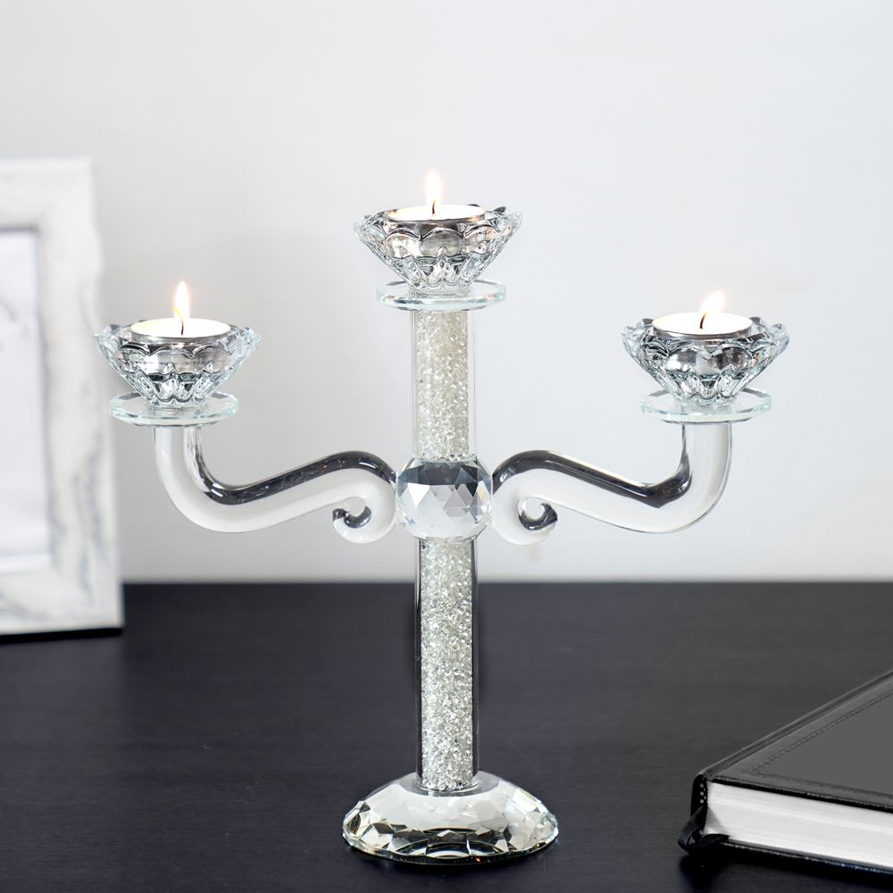 Crystal Candelabra with Crushed Inner Gemstones - 3 Arms