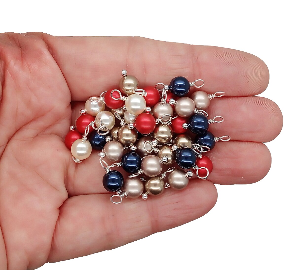 Crystal Charms Mix, 20pc Red Blue & Beige Pearl Dangles, Adorabilities