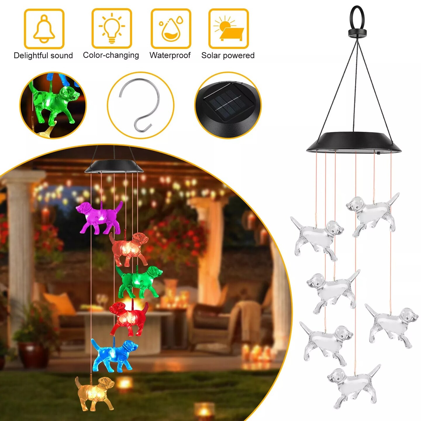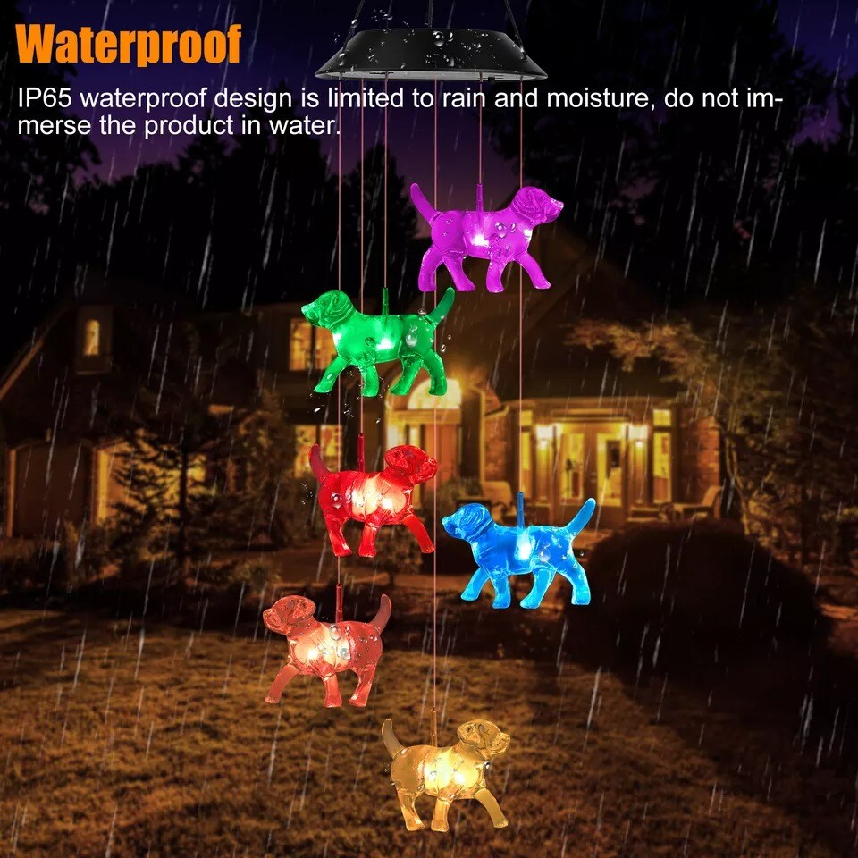 Crystal Dog Solar Wind Chimes LED Light Color-Changing Waterproof Garden Decor