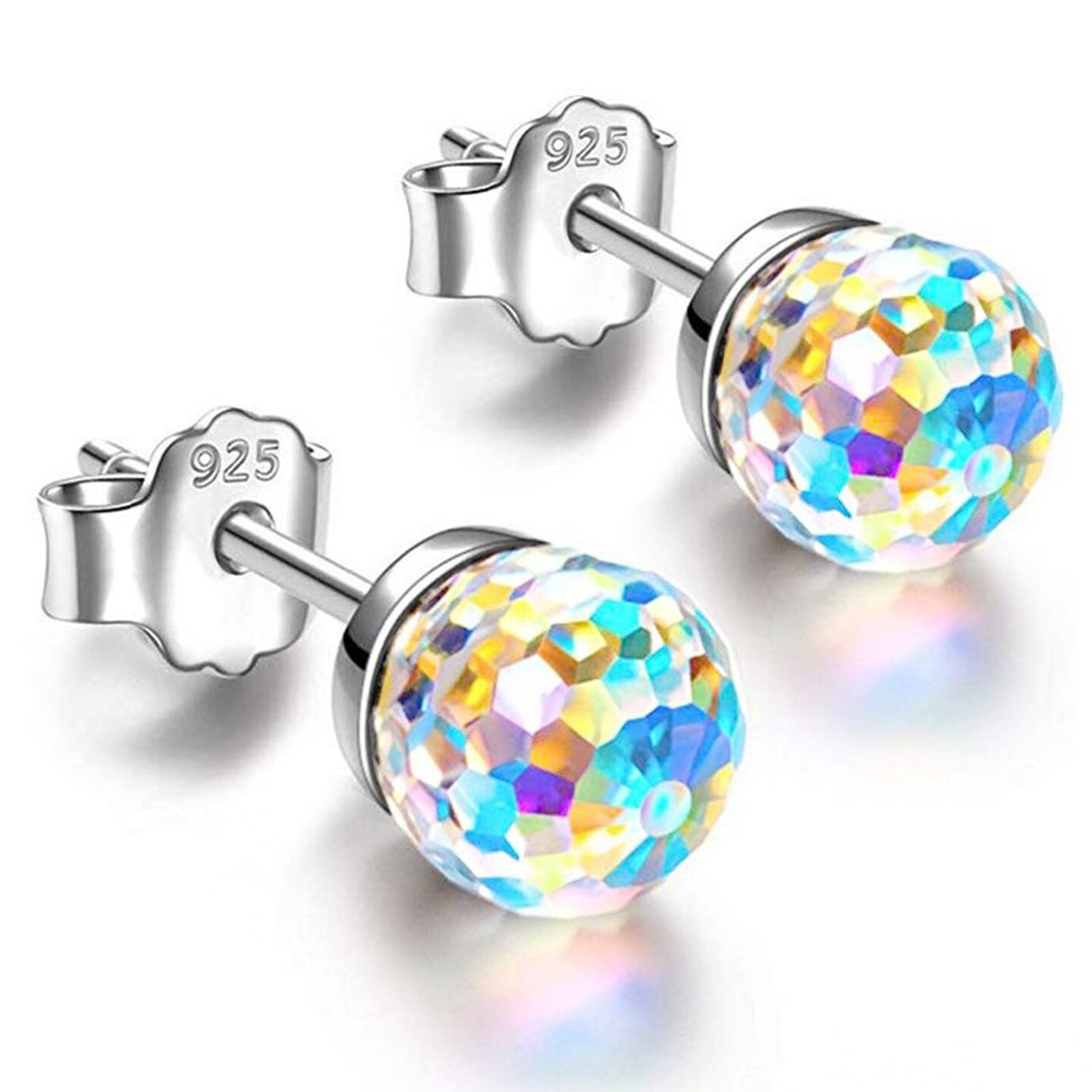 Crystal Earrings for Women 8MM Austrian Crystal Disco Ball Earrings for Women Disco Earrings Iridescent Earrings Crystals Stud Earrings Hypoallergenic Earrings Disco Jewelry for Women