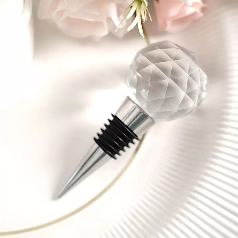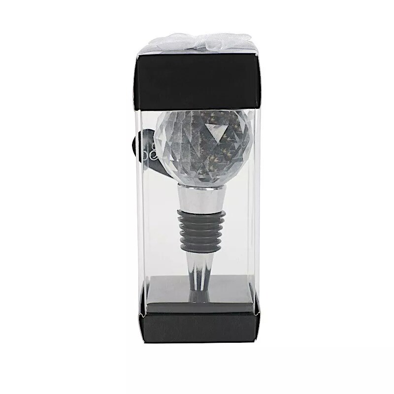 Crystal Glass Ball Silver Metal Wine BOTTLE STOPPER Clear Gift Box Party Events