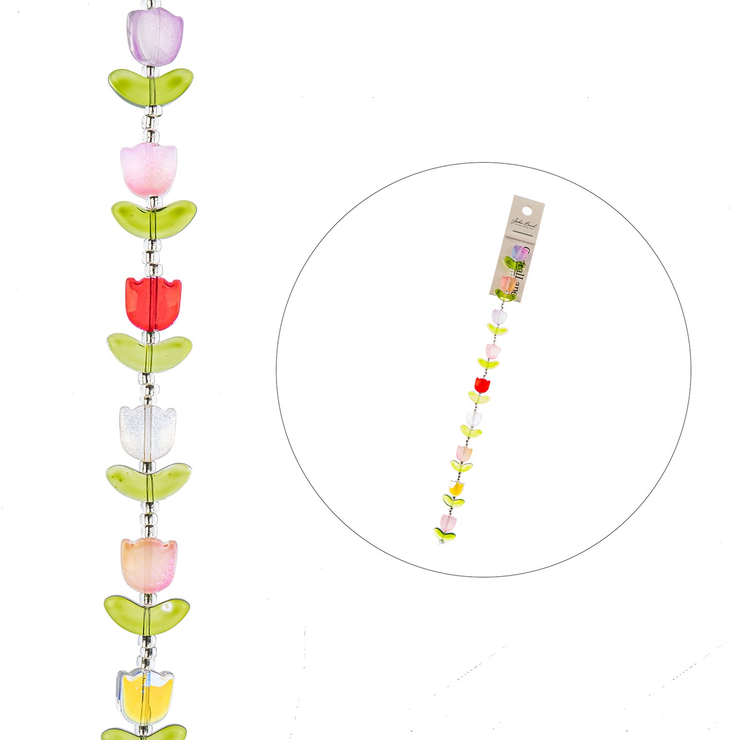Crystal Lane DIY Glass Garden 7in Tulip Flowers Bead Strand, 9pcs