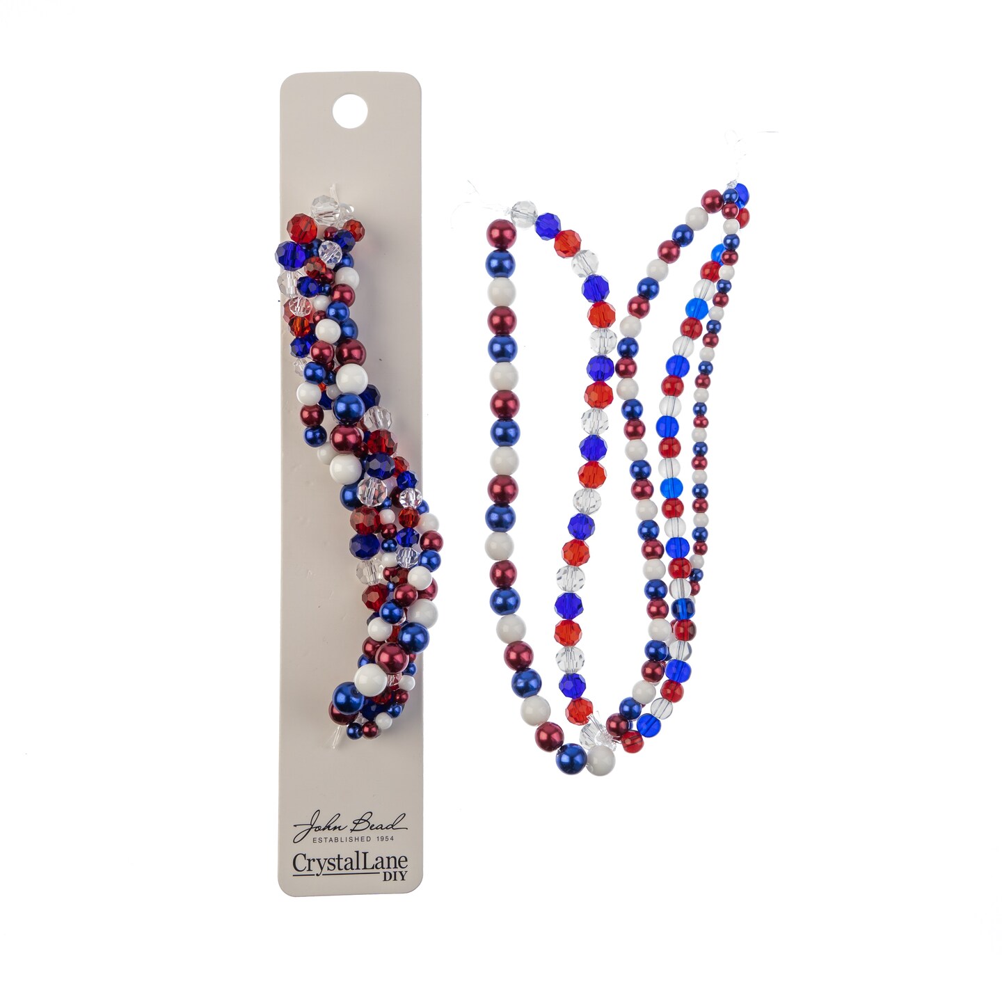 Crystal Lane DIY Red White Blue Twisted Glass & Pearls Beads, 5 Strands