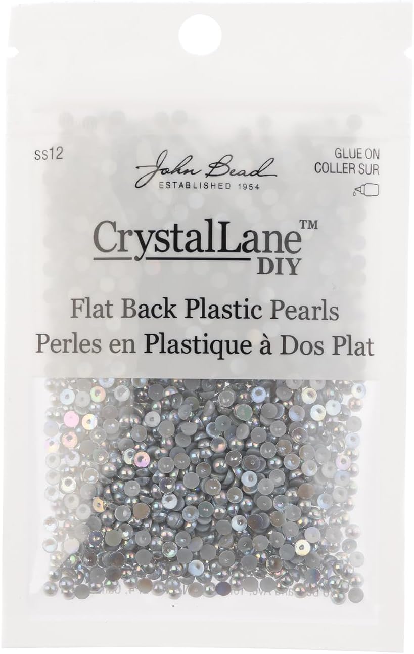 Crystal Lane DIY SS12(3mm) Plastic Pearl Flatback Rhinestones, 1850pcs