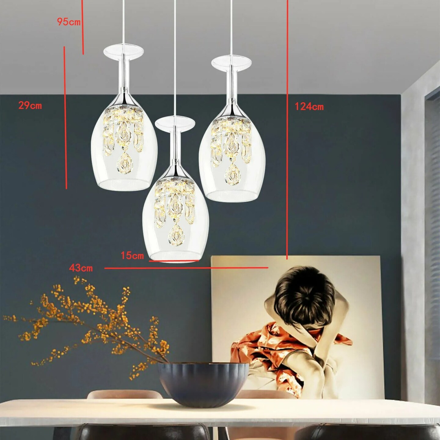 Crystal Wine glasses Chandelier Ceiling Lights Pendant Lamp LED Lighting