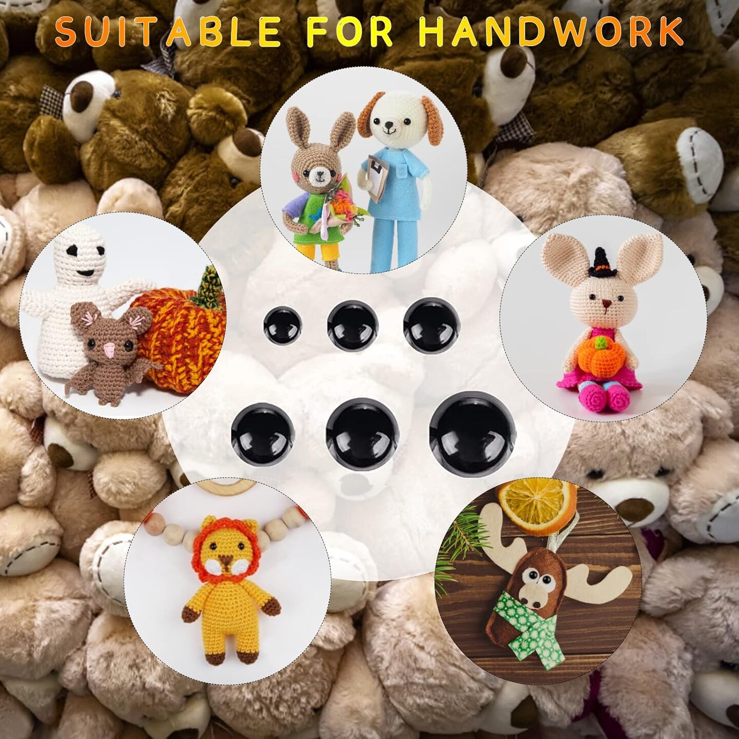Cumkluu 700 Pcs Black Plastic Crochet Safety Eyes with Washers – For 6-14mm Stuffed Animals, Amigurumi DIY & Halloween Decorations