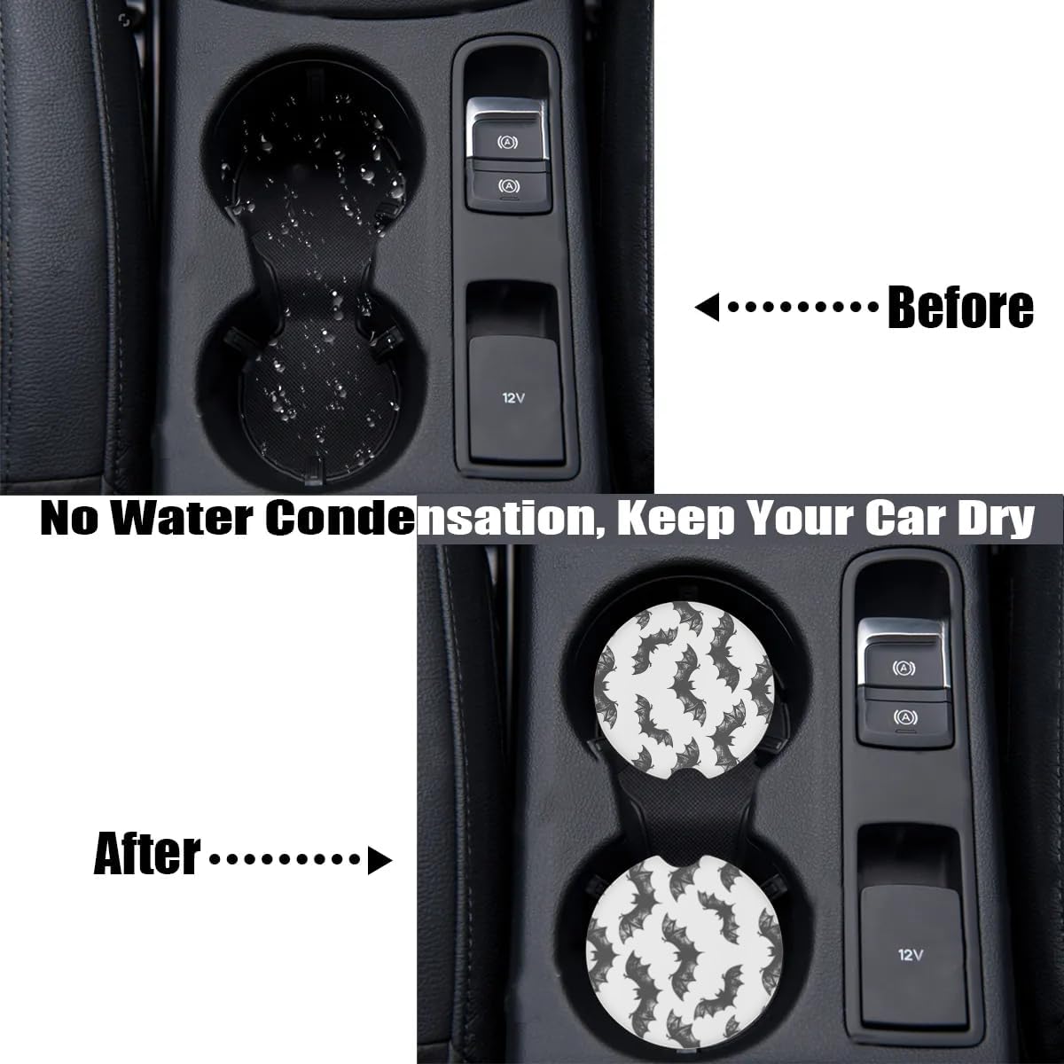 Cup Holder Coaster for Car, 2 Pack Car Coasters for Cup Holders (Bat White)
