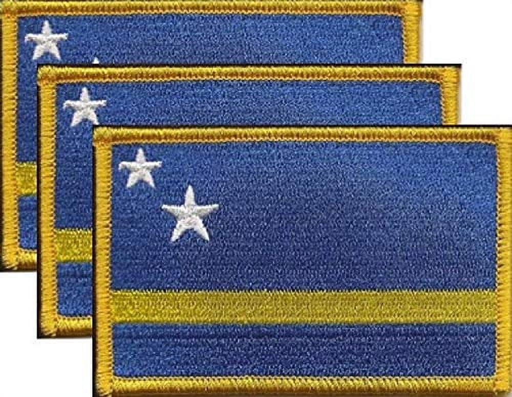 Curacao Flag Patch Set - Pack of 3 Embroidered Iron On or Sew On Emblems. 3.5" x 2.25"