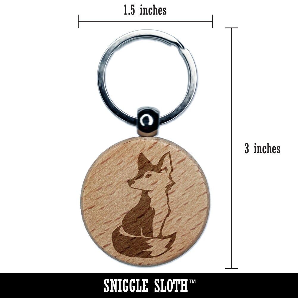 Curious Fox Sitting Looking Back Engraved Wood Round Keychain Tag Charm