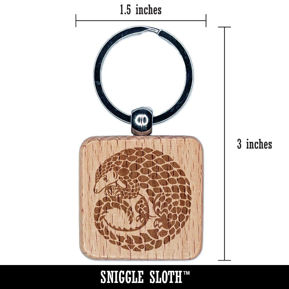 Curled Cute Pangolin Engraved Wood Square Keychain Tag Charm