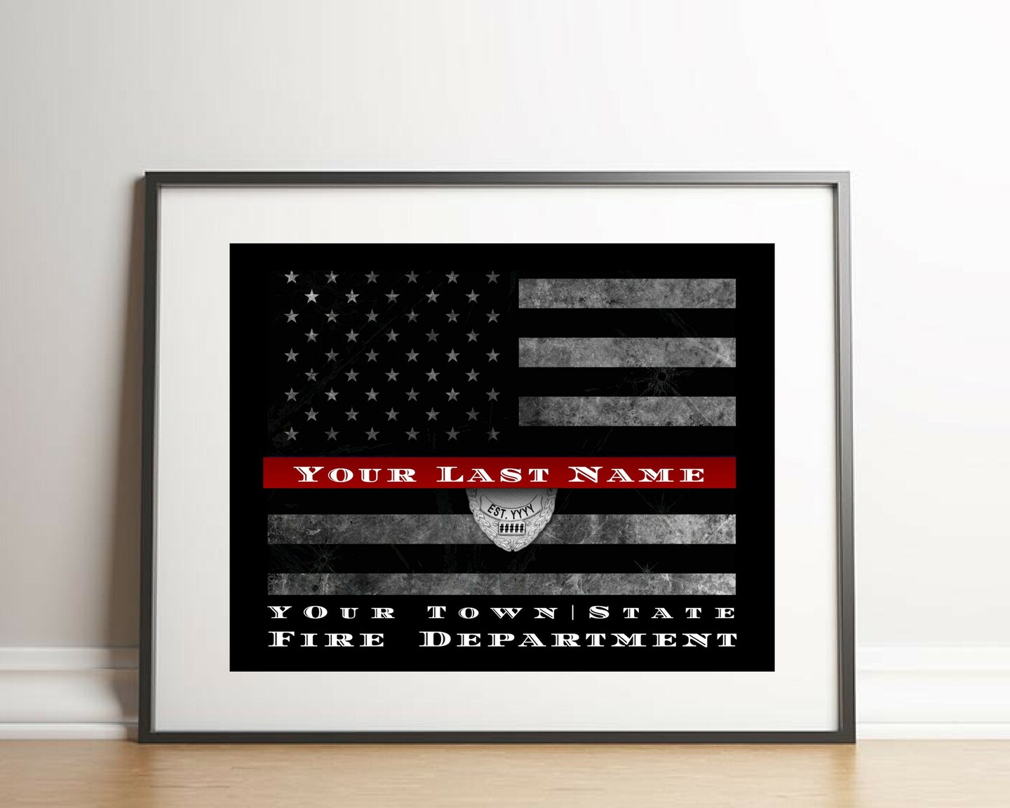 Custom Framed Thin Red Line Flag Art for Firefighters