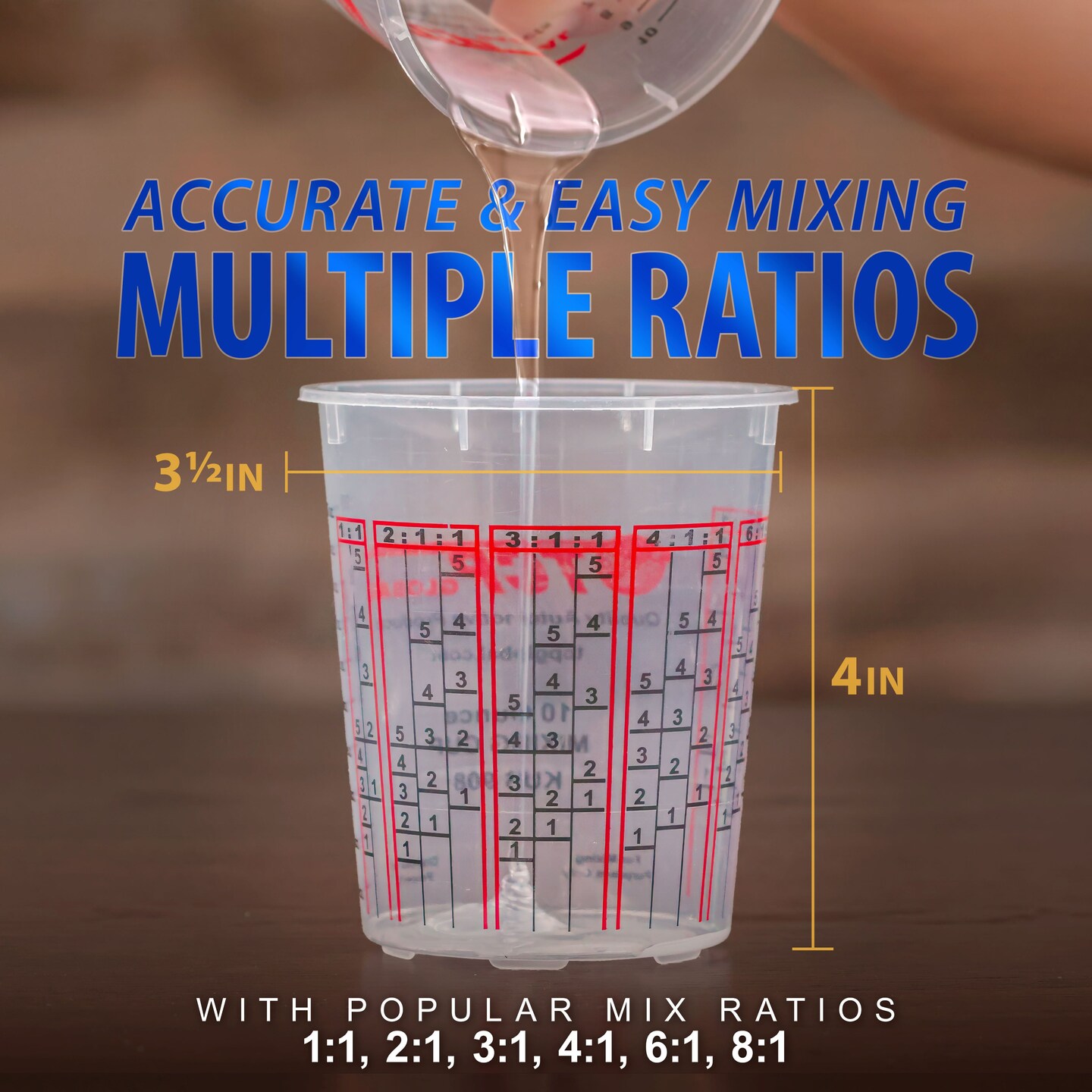 Custom Shop Paint Mixing Cups, 10-Ounce (Box of 100) - Plastic Measuring Cups for Liquids, Automotive Painting, Epoxy Resin, Acrylic Arts, Crafts, Disposable or Reusable, Graduated, Mixing Ratios