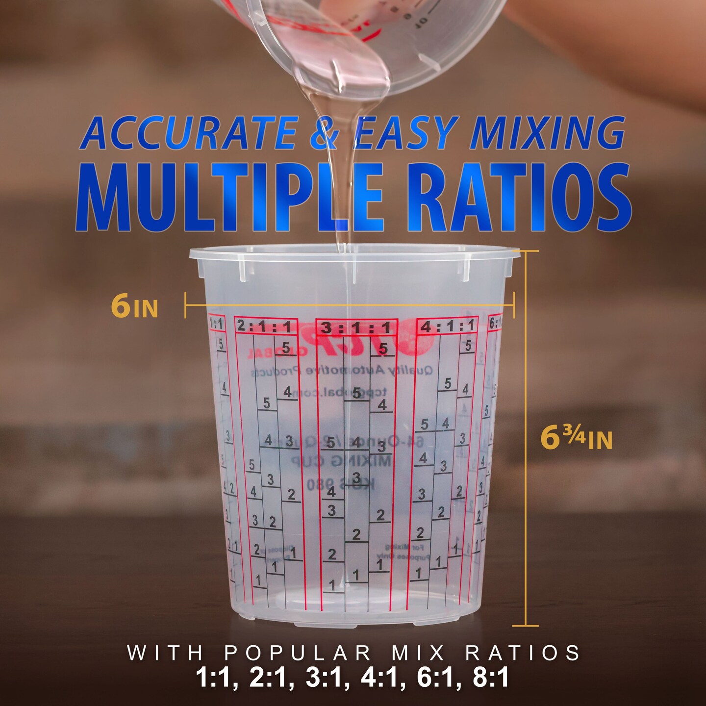 Custom Shop Paint Mixing Cups, 64-Ounce (Box of 100) - Plastic Measuring Cups for Liquids, Automotive Painting, Epoxy Resin, Acrylic Arts, Crafts, Disposable or Reusable, Graduated, Mixing Ratios