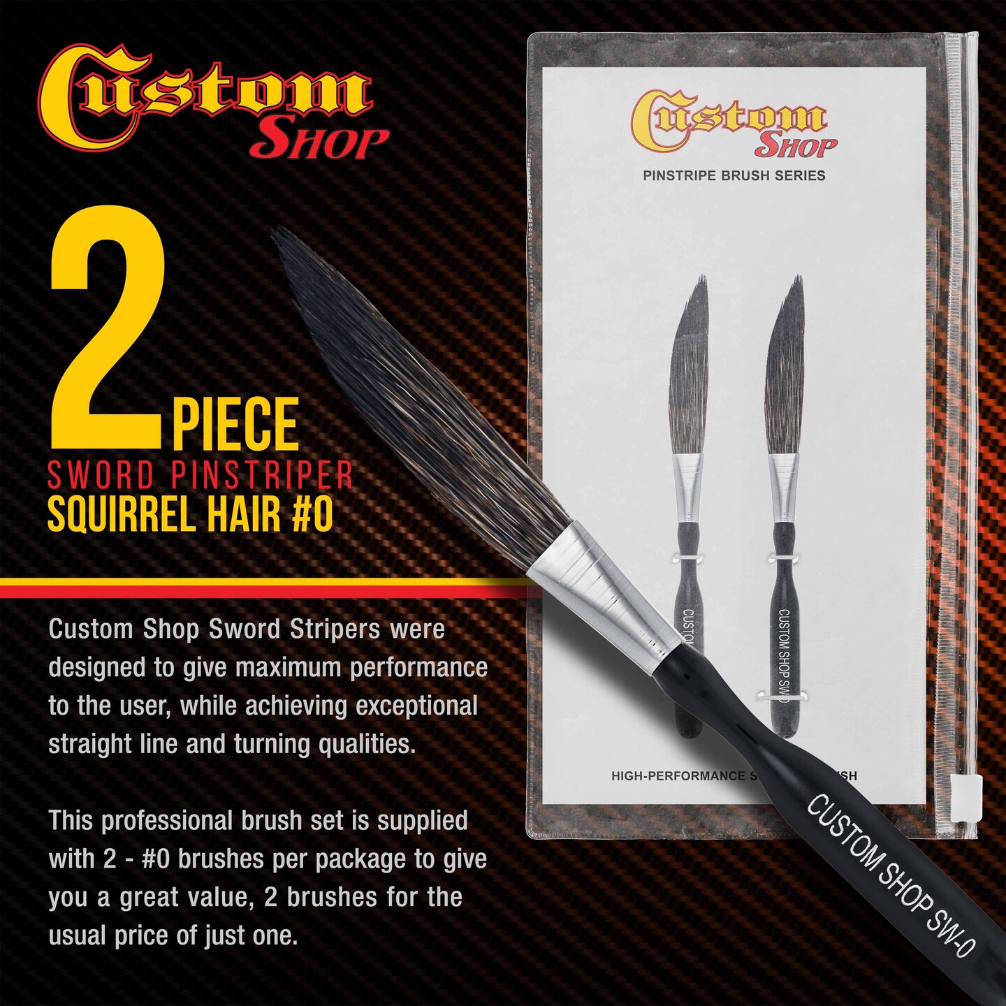 Custom Shop SW-0 Sword Pinstriper #0 - 2" Squirrel Hair (Pack of 2)