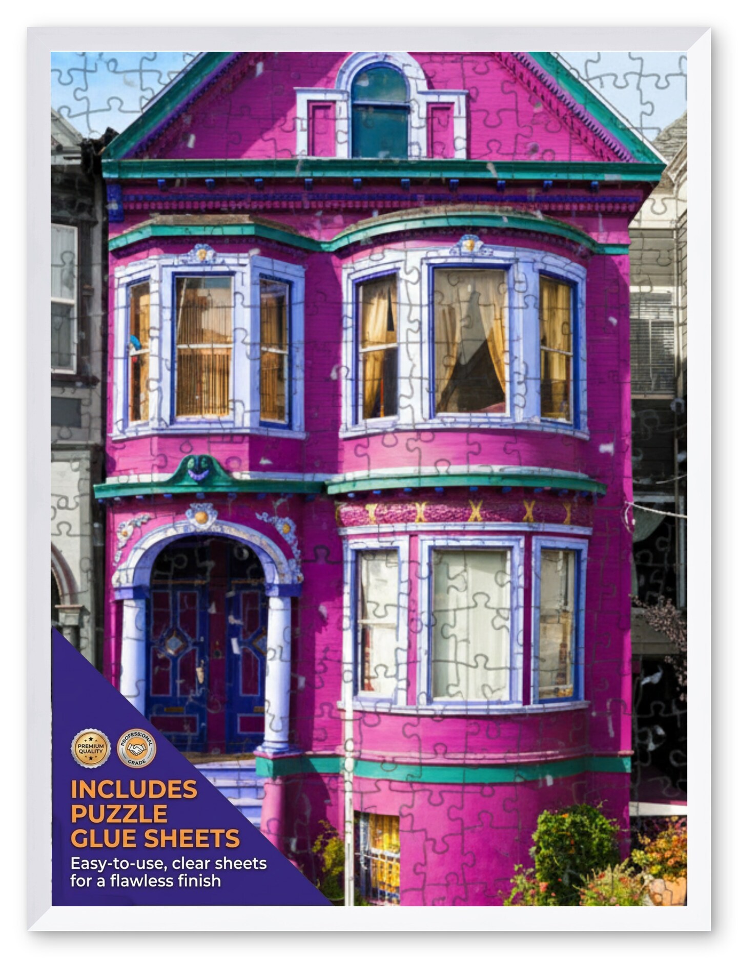 CustomPictureFrames.com Solid Wood Round Mat Puzzle Frame - Multiple Sizes - Black Precision-Cut Mat - Adhesive Preservation Sheets - Assembled in USA Made in the USA