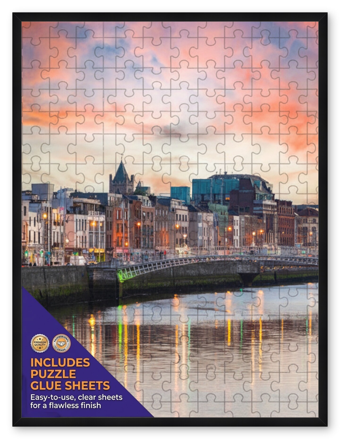 CustomPictureFrames.com Solid Wood Round Mat Puzzle Frame - Multiple Sizes - Black Precision-Cut Mat - Adhesive Preservation Sheets - Assembled in USA Made in the USA